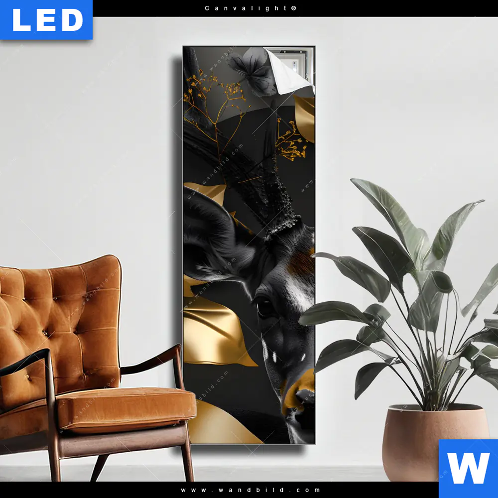 Canvalight® TEX Leuchtbild | Junger Hirsch und Goldblumen | Schmal