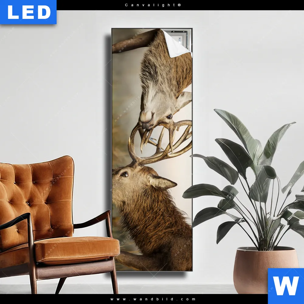 Canvalight® Leuchtbild | Kämpfende Hirsche | Schmal