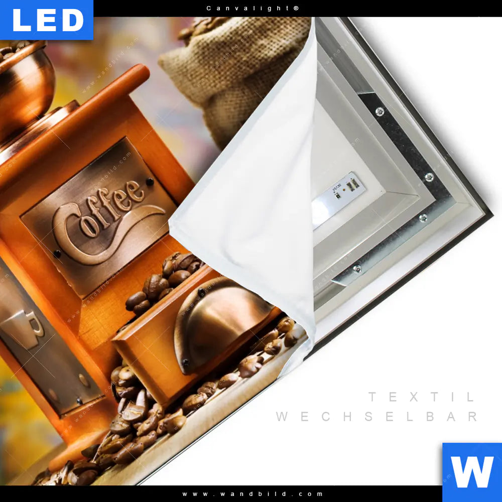 LED-Textilrahmen-Bild mit austauschbarem Essen - Trinken Textil-Druck (Wechselbild)