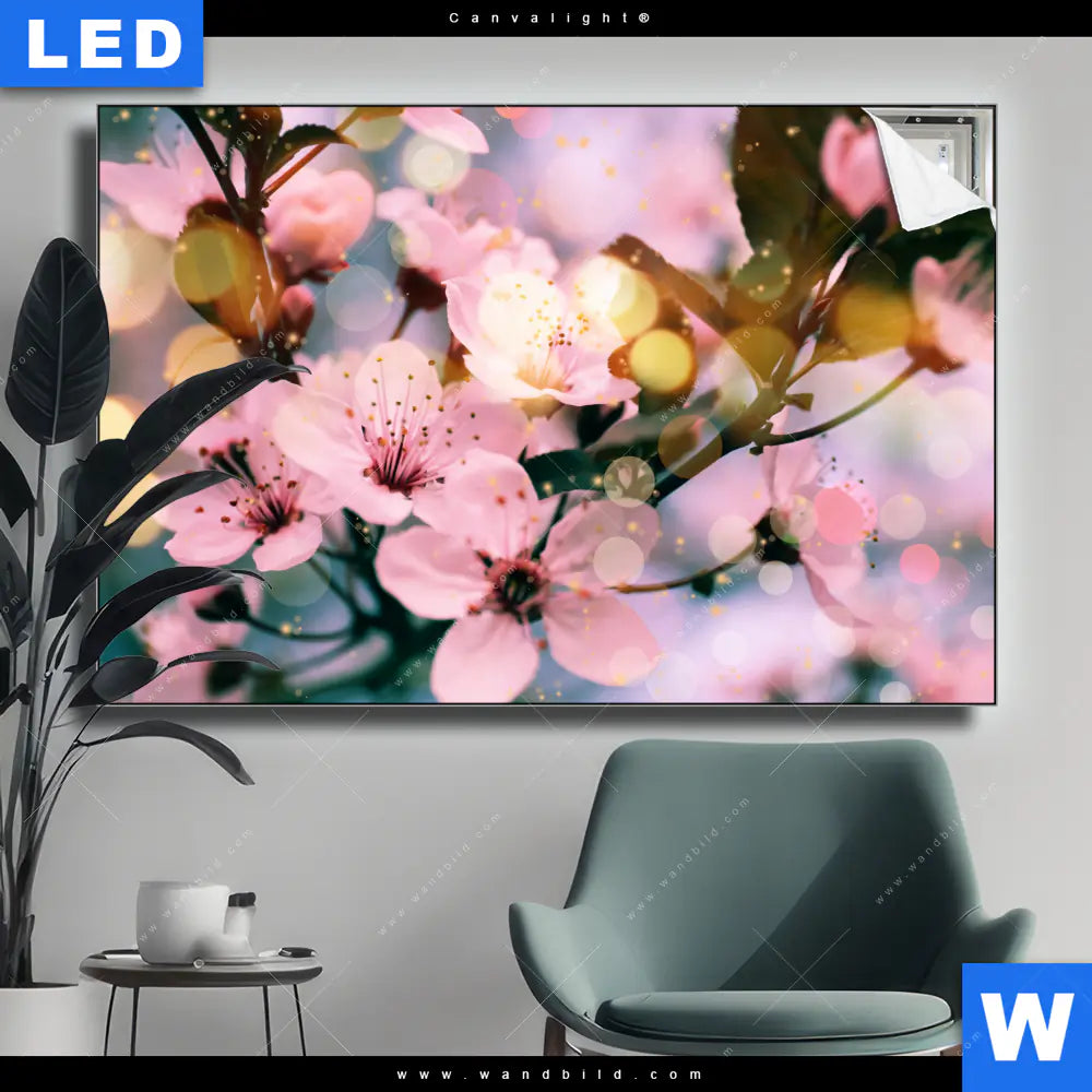 Canvalight® TEX Leuchtbild | Kirschblüten im Frühlingslicht | Querformat