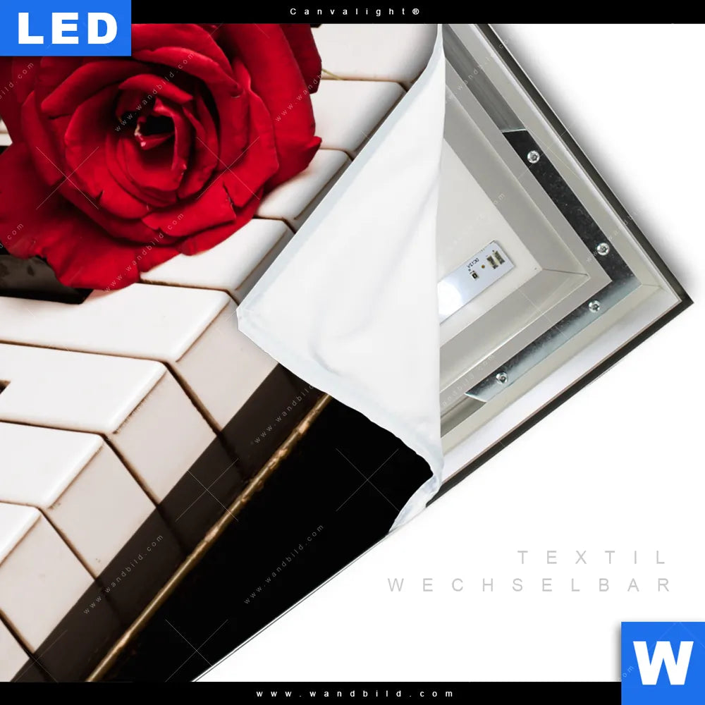 Canvalight® TEX Leuchtbild | Klavier & Rose | Quadrat