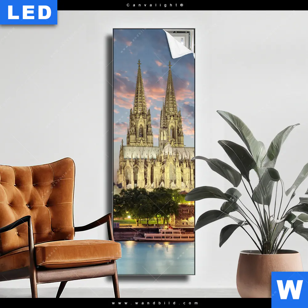 Canvalight® Leuchtbild | Kölner Dom bei Nacht | Schmal