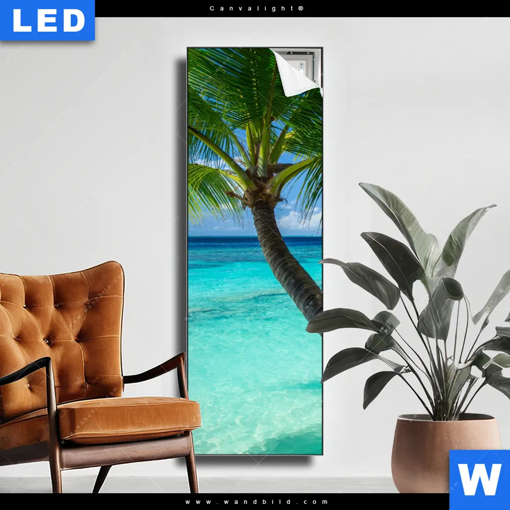 Canvalight® Leuchtbild | Kokospalme am Strand | Schmal