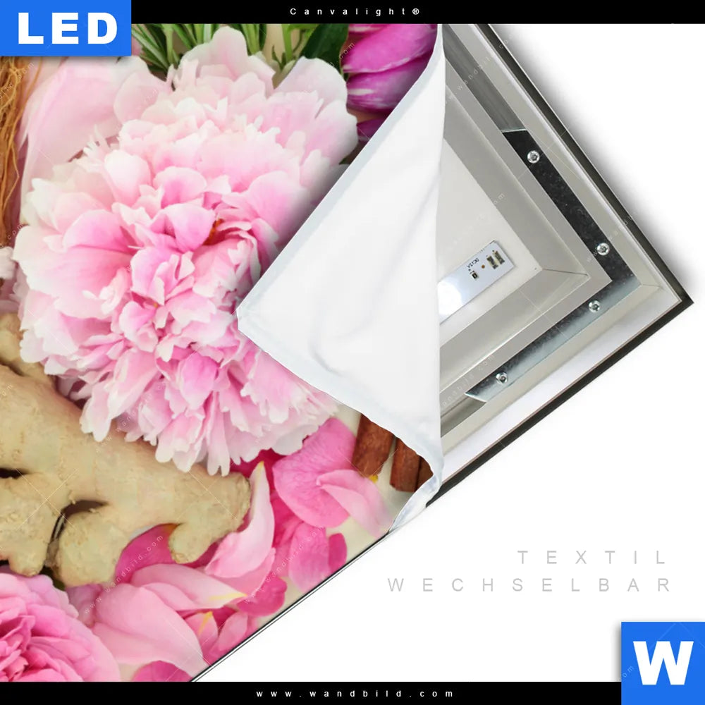 LED-Textilrahmen-Bild mit austauschbarem Essen - Trinken, Blumen - Botanik Textil-Druck (Wechselbild)