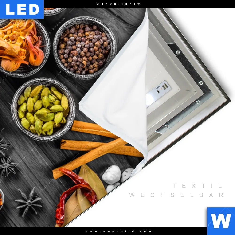 LED-Textilrahmen-Bild mit austauschbarem Essen - Trinken Textil-Druck (Wechselbild)