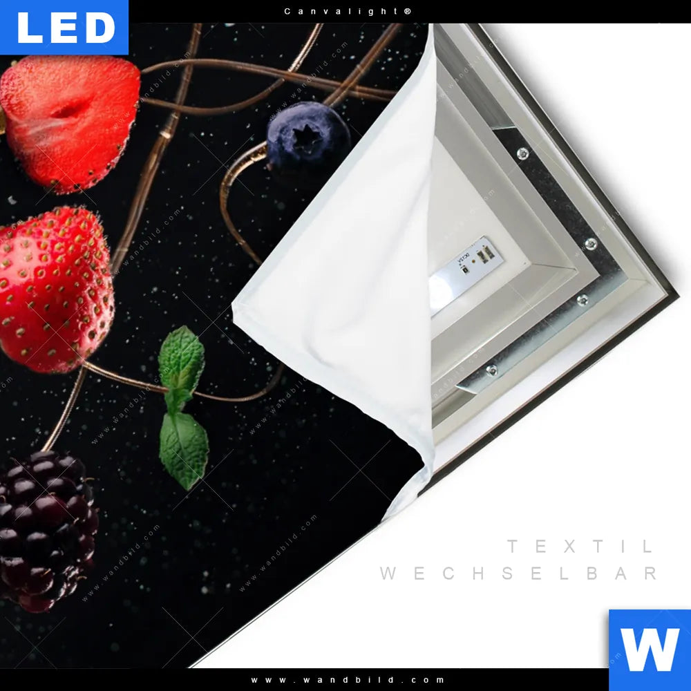 LED-Textilrahmen-Bild mit austauschbarem Essen - Trinken Textil-Druck (Wechselbild)