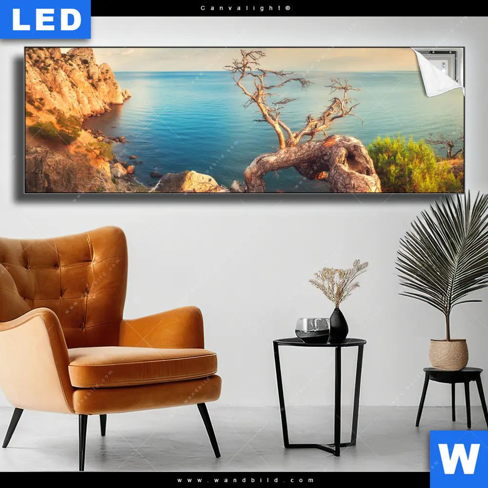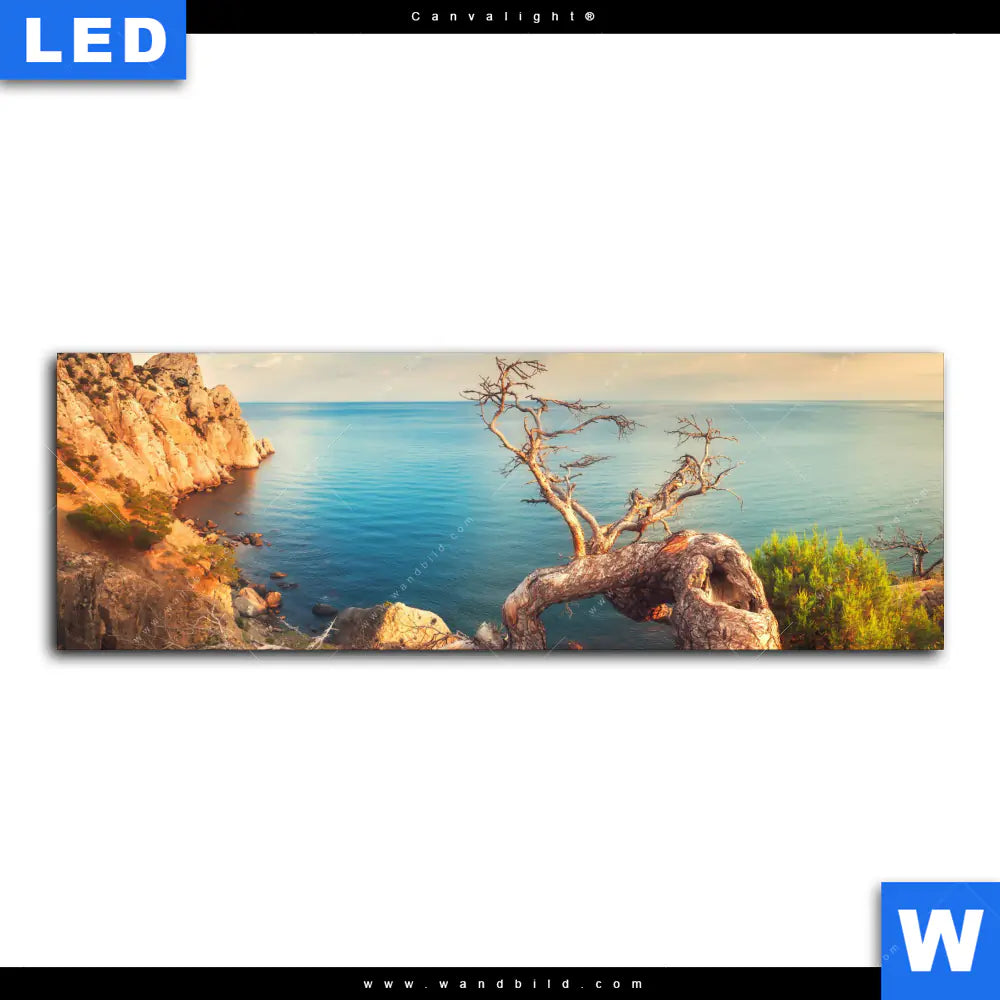 Canvalight® TEX Leuchtbild | Küstenlandschaft mit altem Baum | Panorama