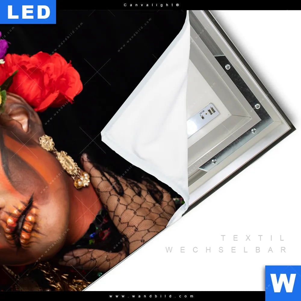 LED-Textilrahmen-Bild mit austauschbarem Porträts - Menschen Textil-Druck (Wechselbild)