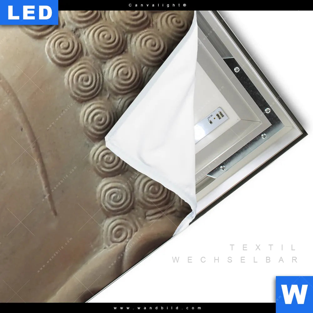 LED-Textilrahmen-Bild mit austauschbarem Buddha - Feng Shui Textil-Druck (Wechselbild)