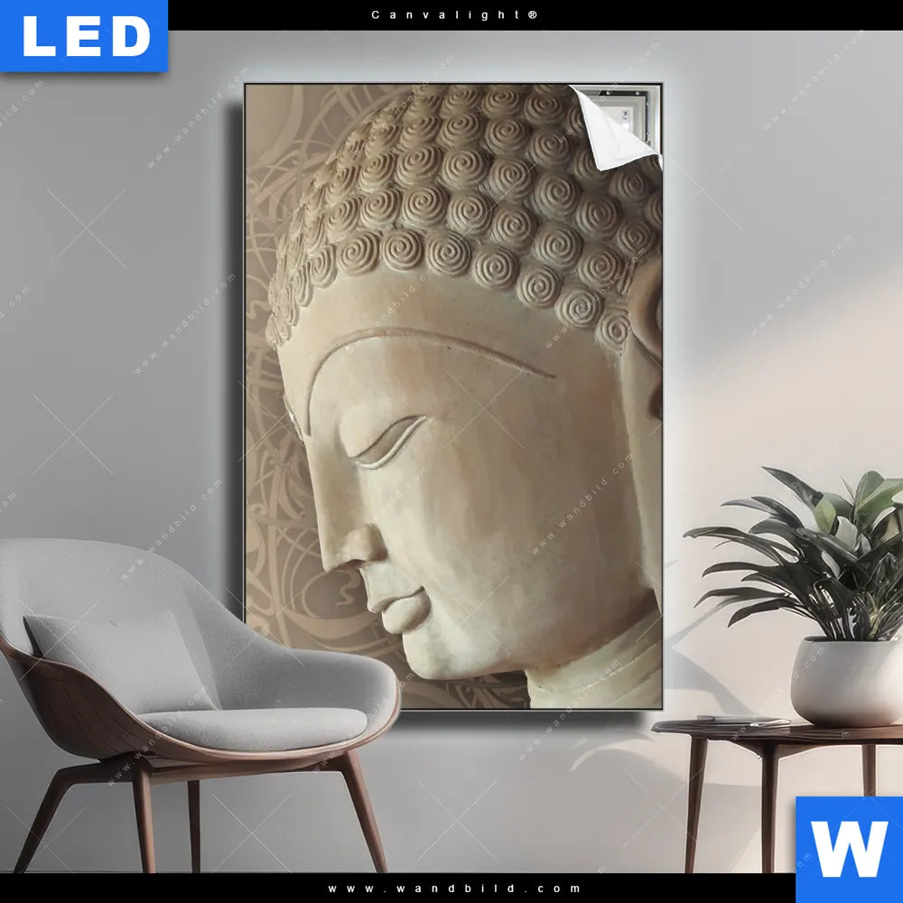 Canvalight® TEX Leuchtbild | Lächelnder Buddha | Hochformat