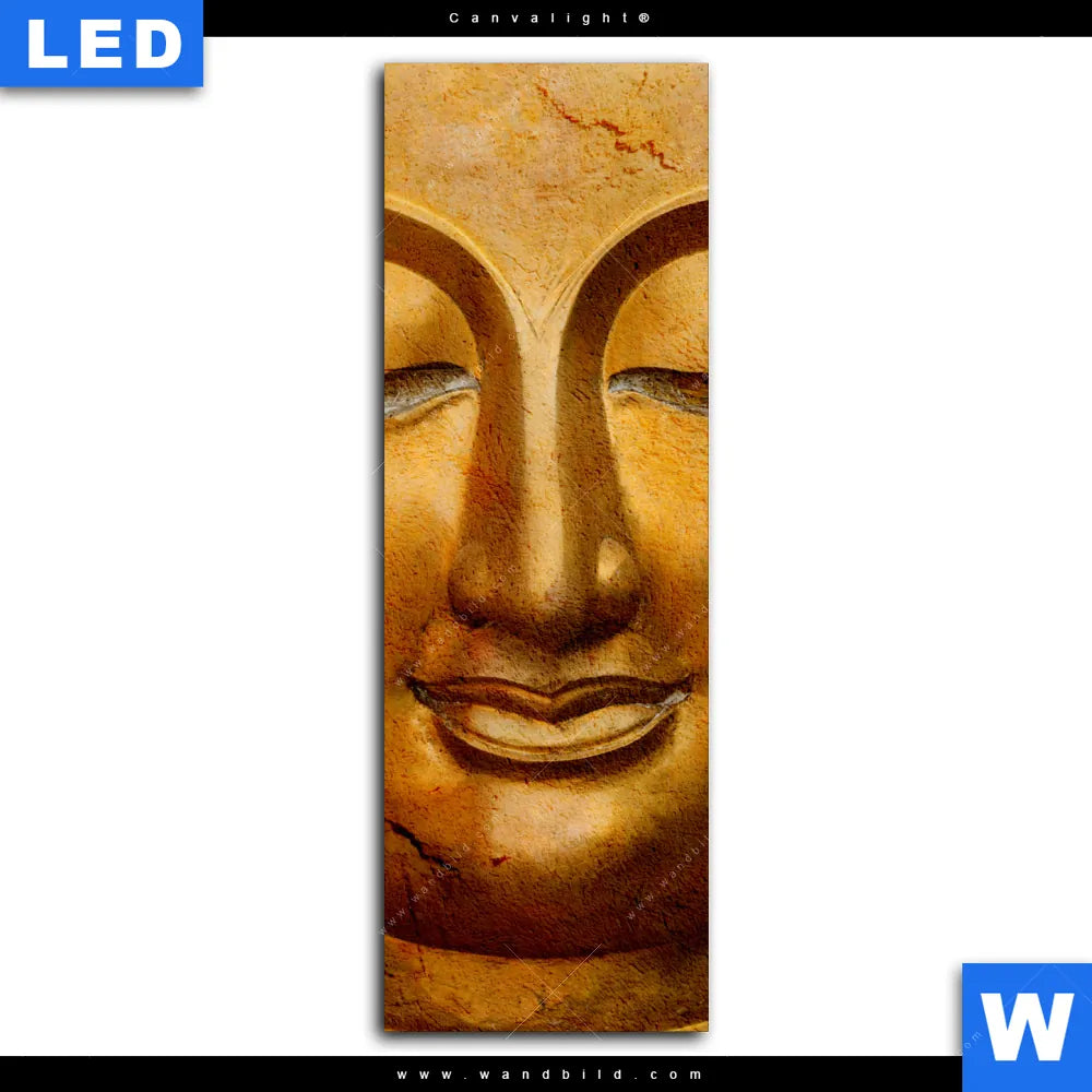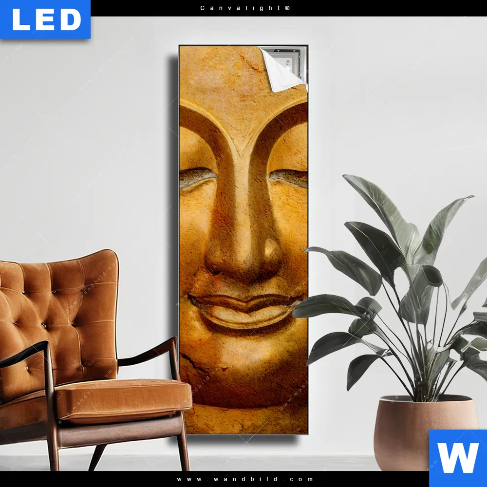 Canvalight® Leuchtbild | Lächelnder Buddha in Gold | Schmal