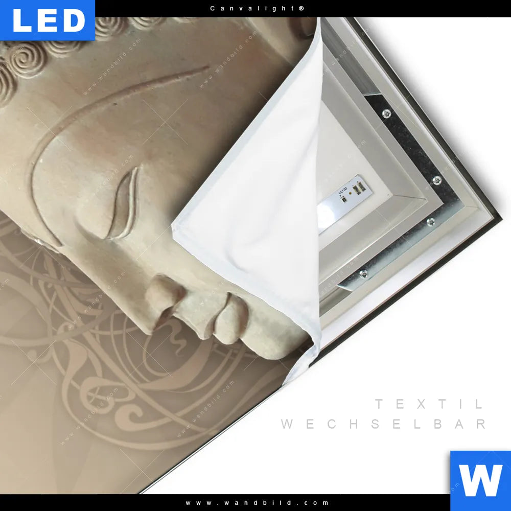 LED-Textilrahmen-Bild mit austauschbarem Buddha - Feng Shui Textil-Druck (Wechselbild)
