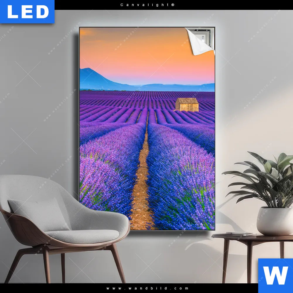 Canvalight® TEX Leuchtbild | Lavendel Blumen Feld | Hochformat