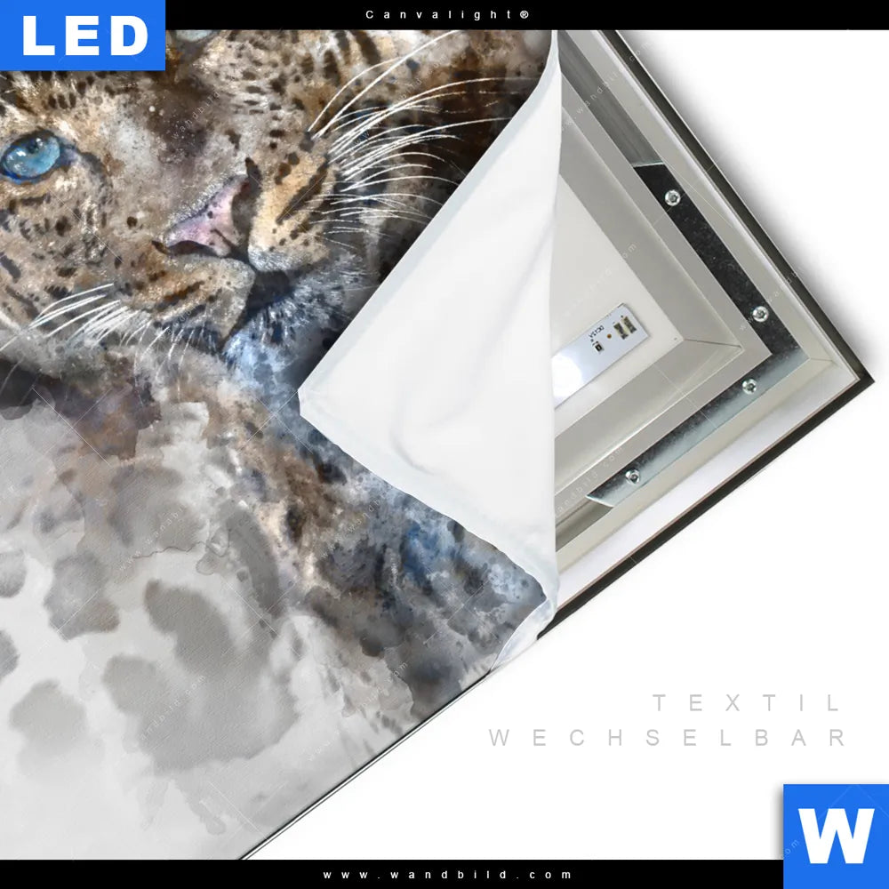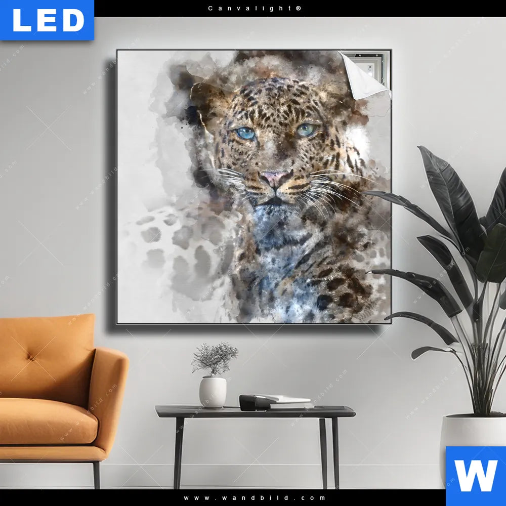 Canvalight® TEX Leuchtbild | Leopard Aquarell | Quadrat