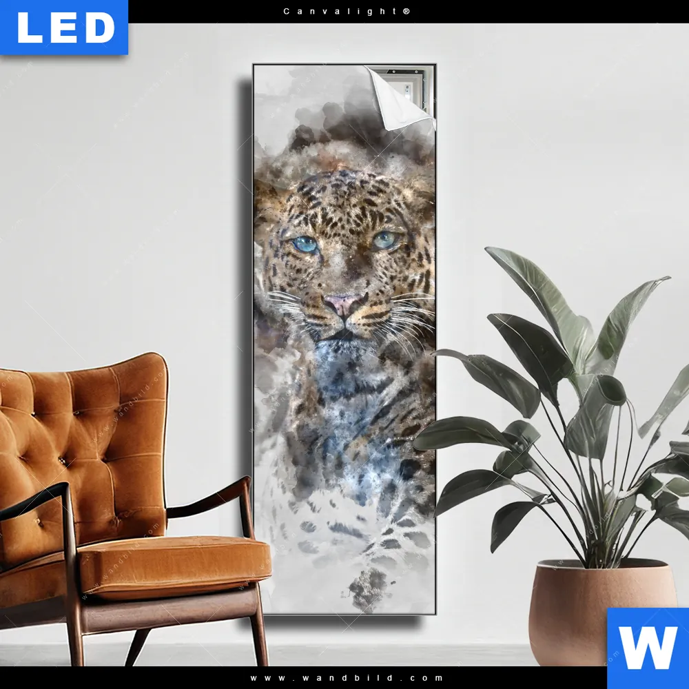 Canvalight® TEX Leuchtbild | Leopard Aquarell | Schmal