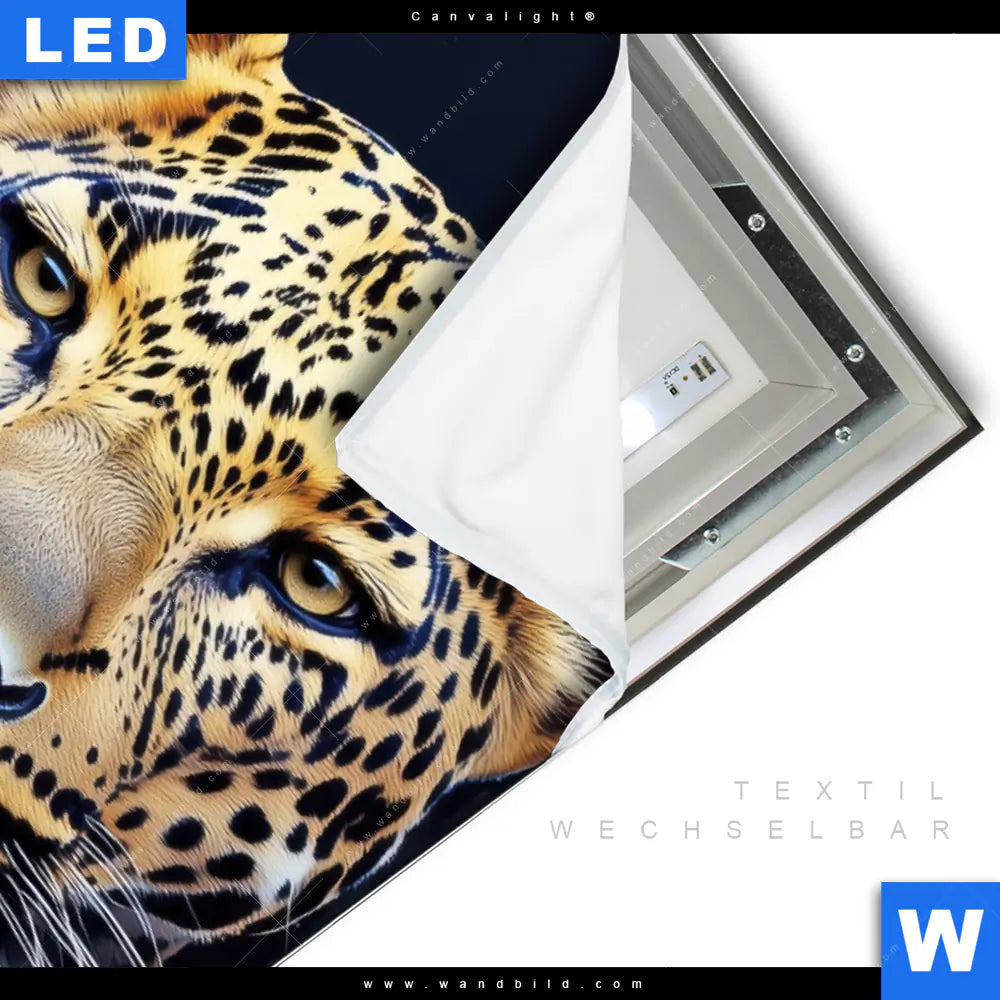 Canvalight® TEX Leuchtbild | Leopard - Eleganz trifft Farbe | Hochformat