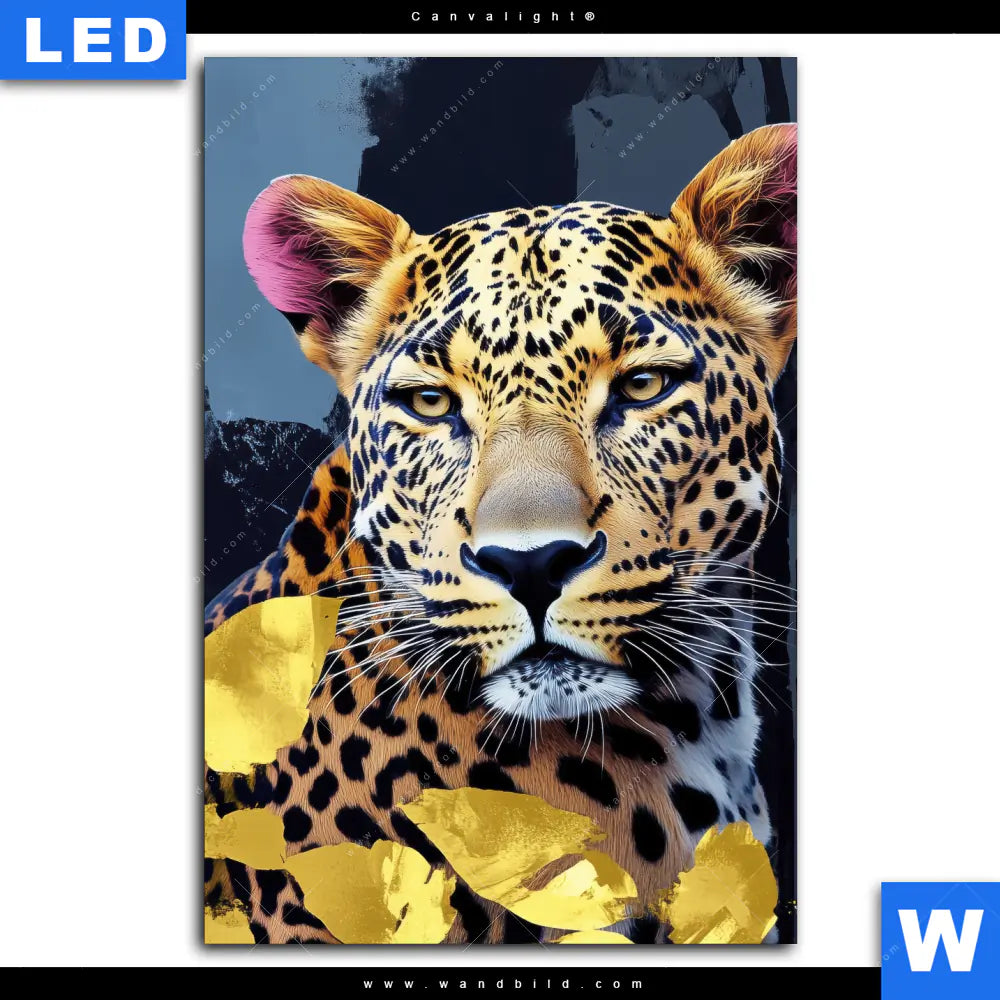 Canvalight® Leuchtbild | Leopard - Eleganz trifft Farbe | Hochformat
