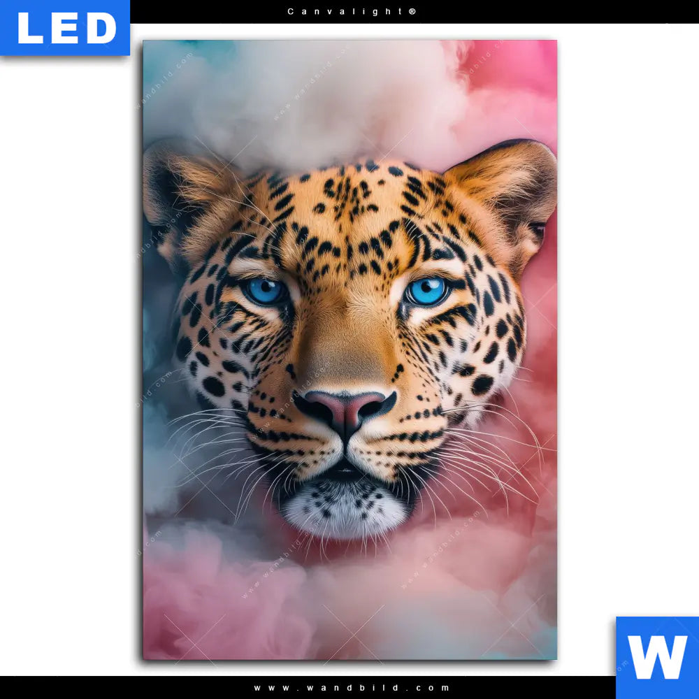 Canvalight® Leuchtbild | Leopard im Farbnebel | Hochformat