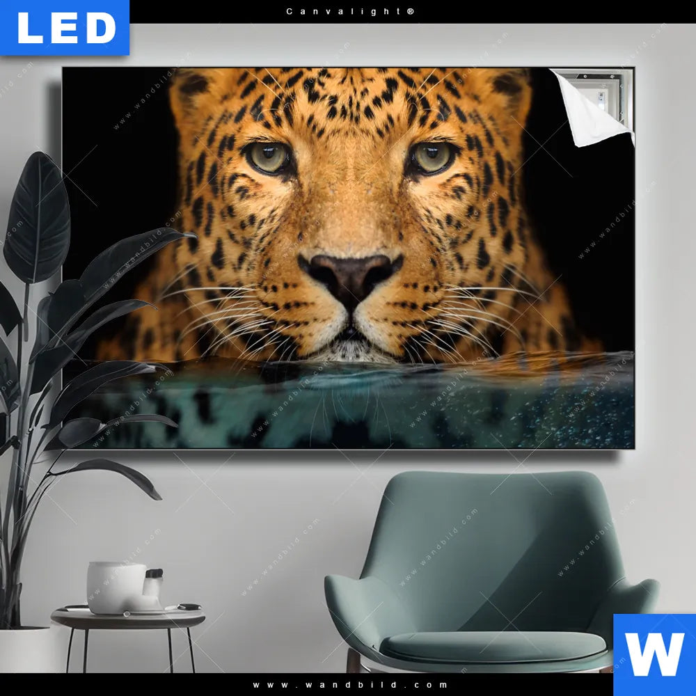 Canvalight® Leuchtbild | Leopard im Wasser | Querformat