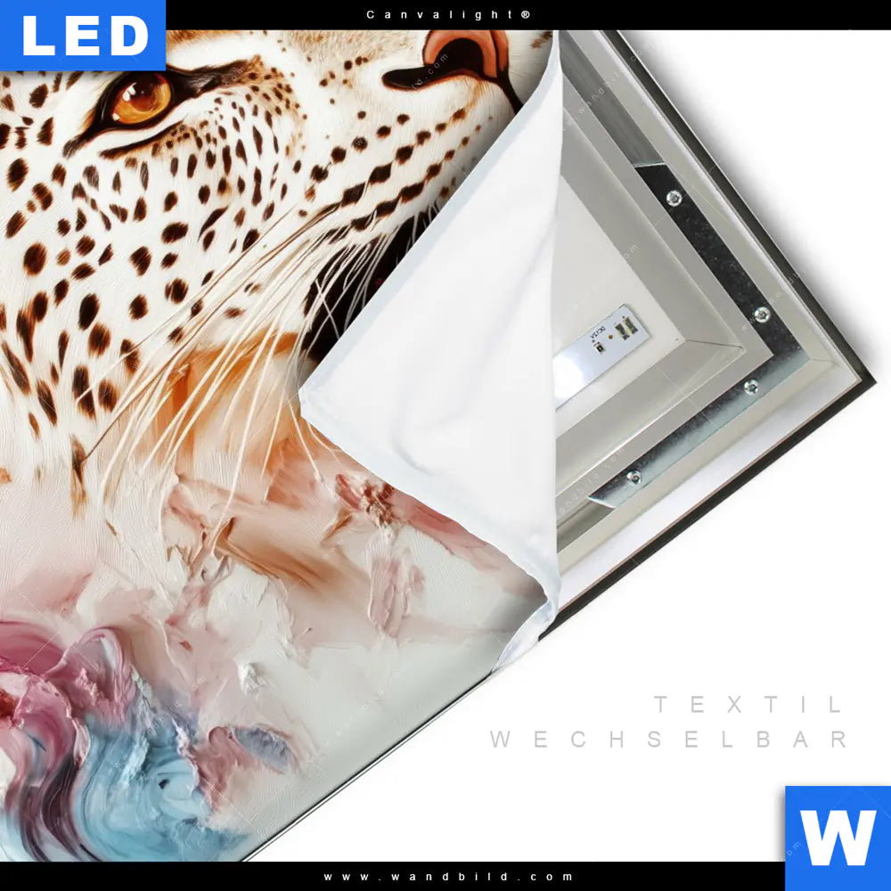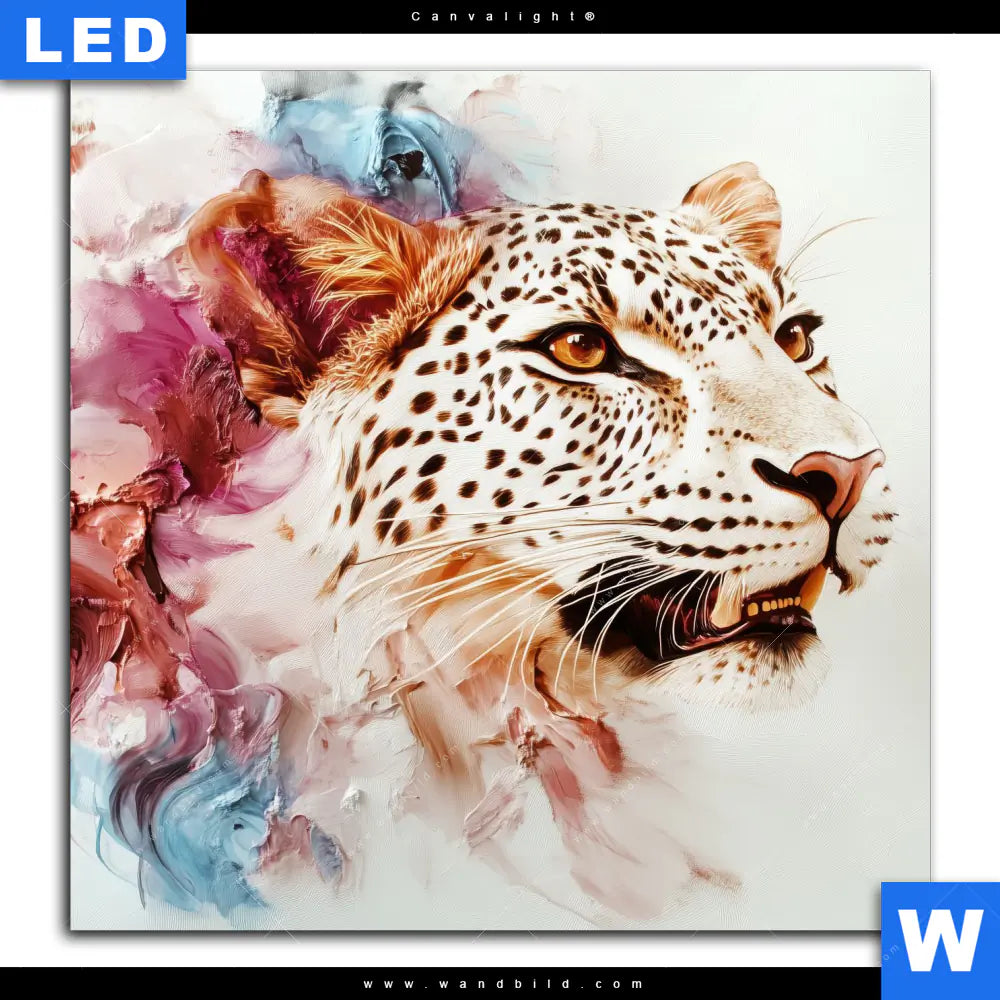 Canvalight® TEX Leuchtbild | Leopard in Farbexplosion | Quadrat