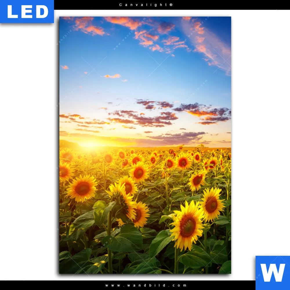 Canvalight® Leuchtbild | Leuchtend gelbe Sonnenblumen am Abend | Hochformat