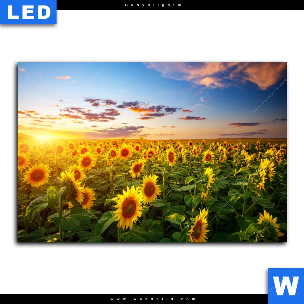 Canvalight® Leuchtbild | Leuchtend gelbe Sonnenblumen am Abend | Querformat