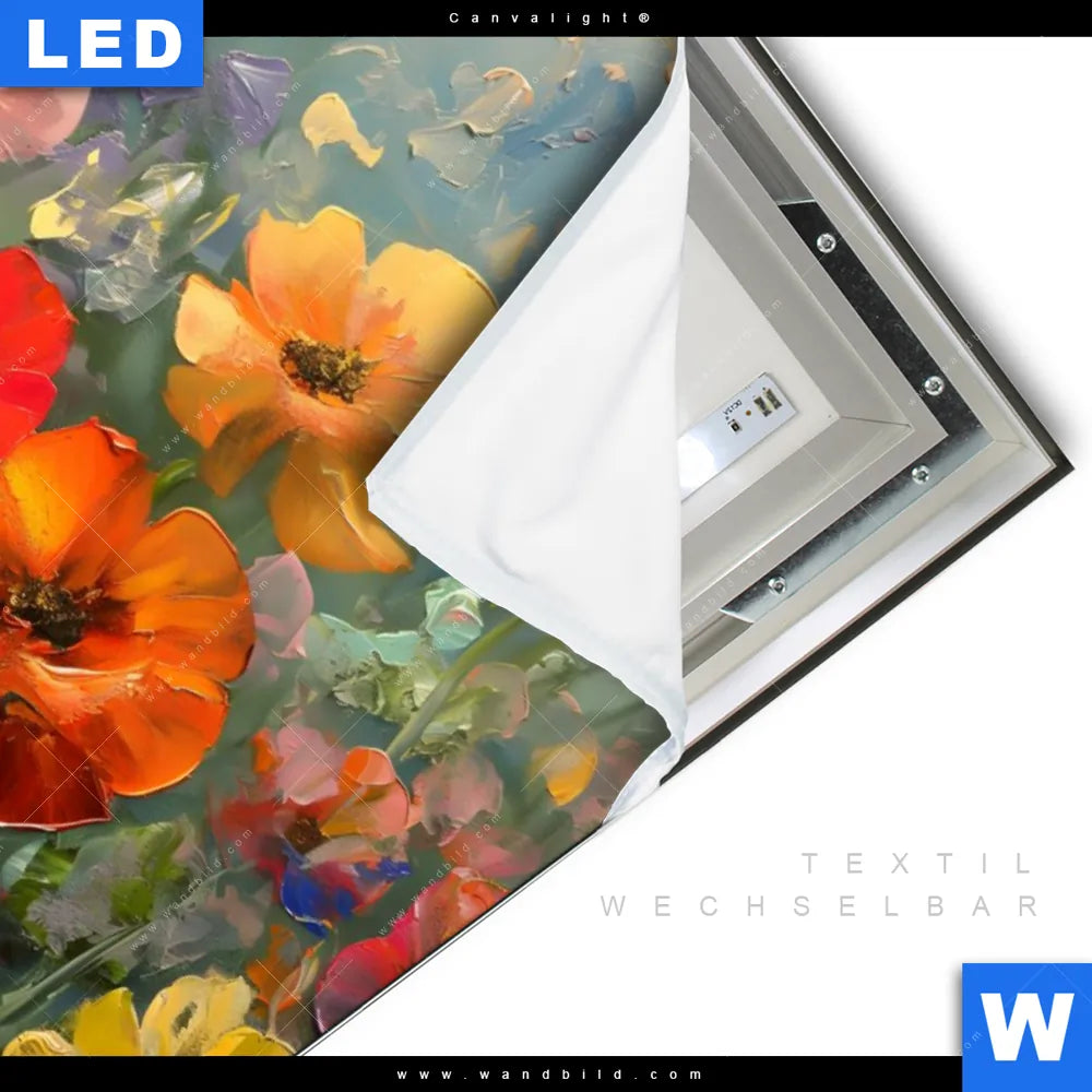 Canvalight® TEX Leuchtbild | Leuchtende Frühlingsblumen | Hochformat