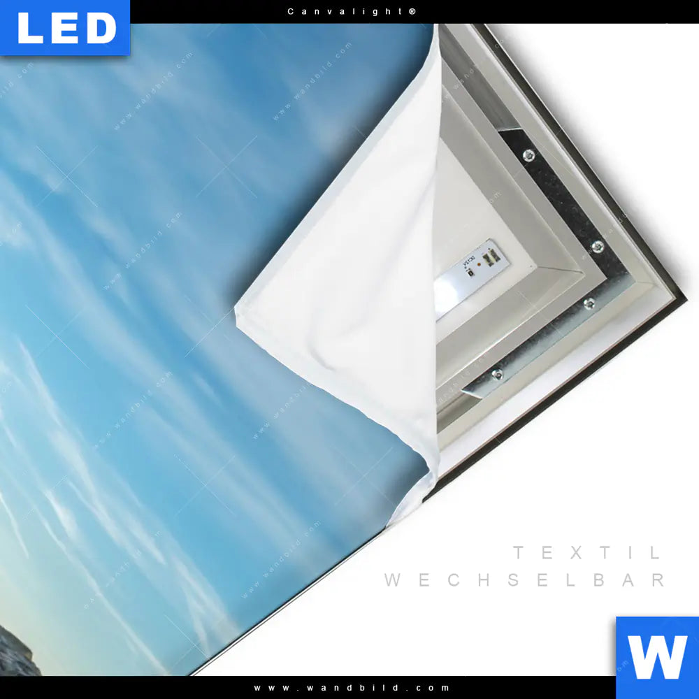LED-Textilrahmen-Bild mit austauschbarem Strand - Meer, Landschaften Textil-Druck (Wechselbild)