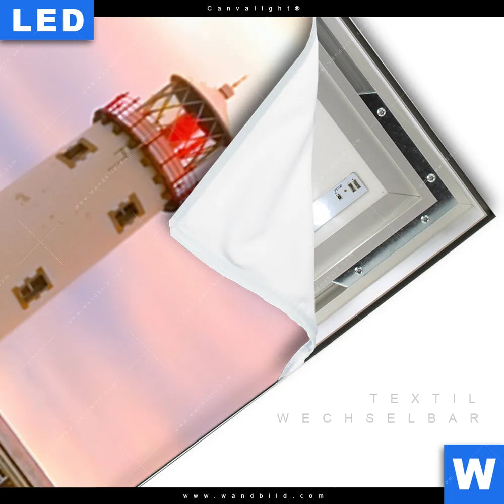 Canvalight® TEX Leuchtbild | Leuchtturm bei stürmischer See | Schmal