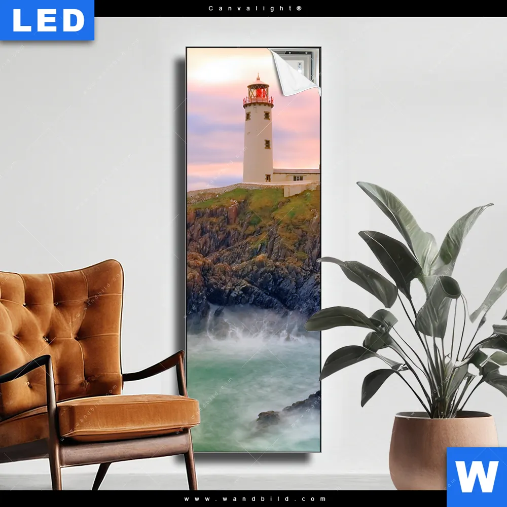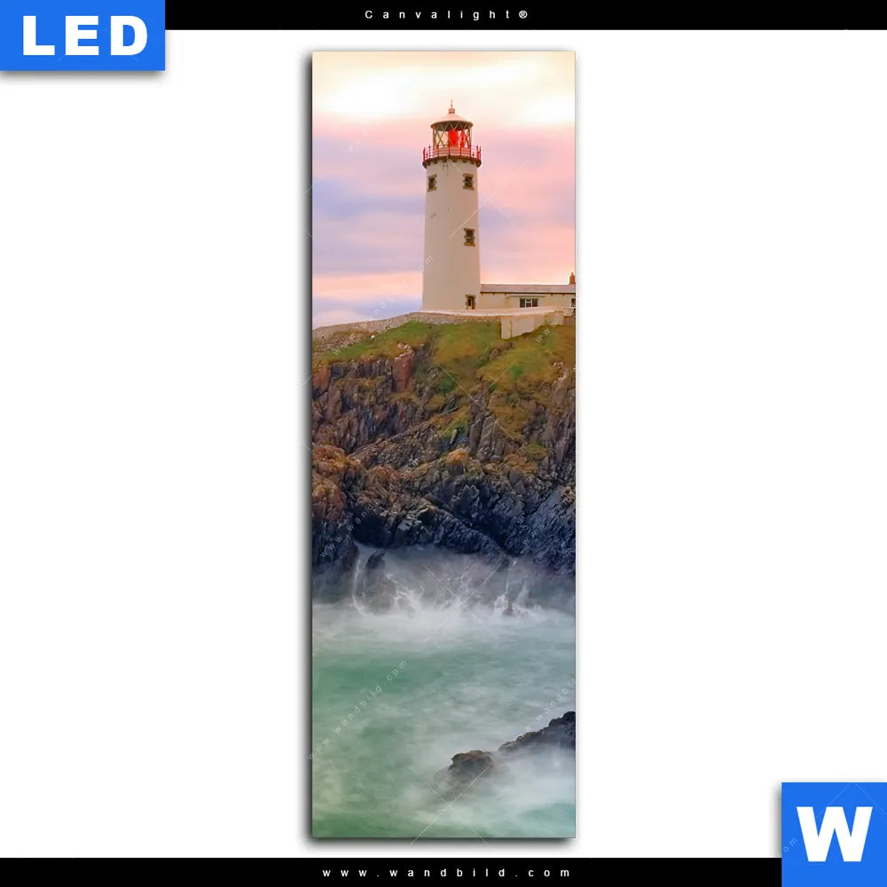 Canvalight® Leuchtbild | Leuchtturm bei stürmischer See | Schmal