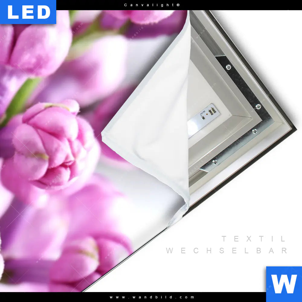 LED-Textilrahmen-Bild mit austauschbarem Blumen - Botanik Textil-Druck (Wechselbild)