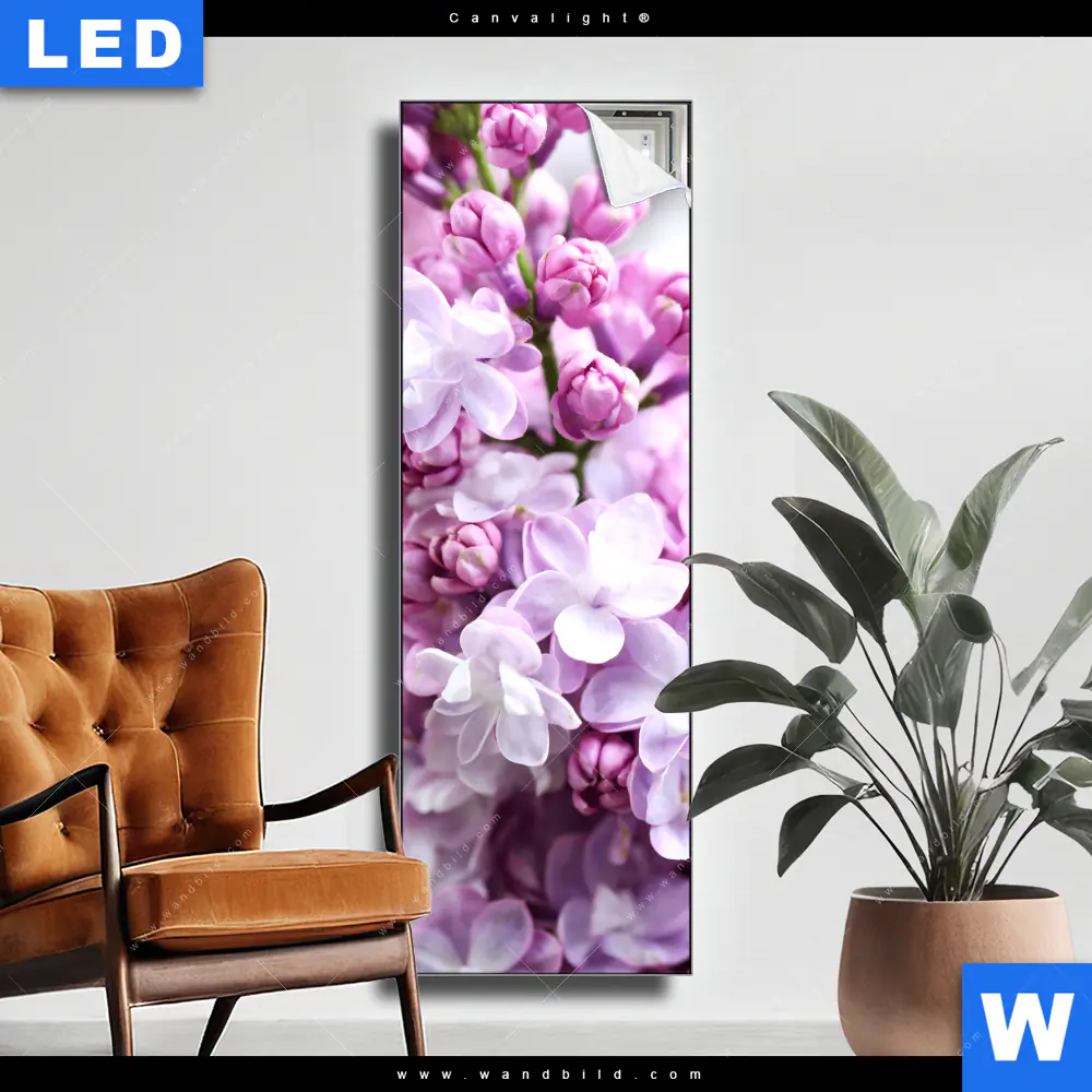 Canvalight® TEX Leuchtbild | Lila Fliederblüten | Schmal
