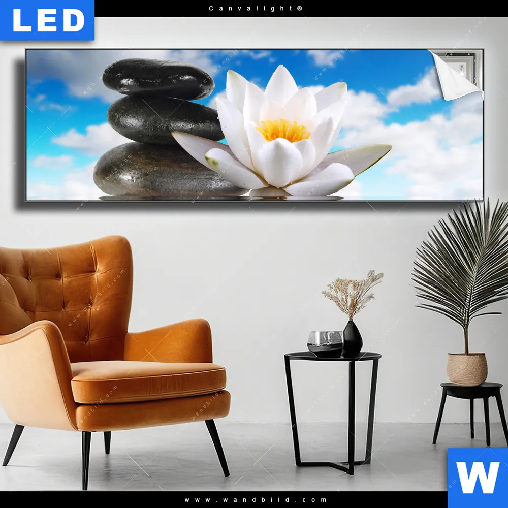 Canvalight® TEX Leuchtbild | Lilie & Zensteine | Panorama