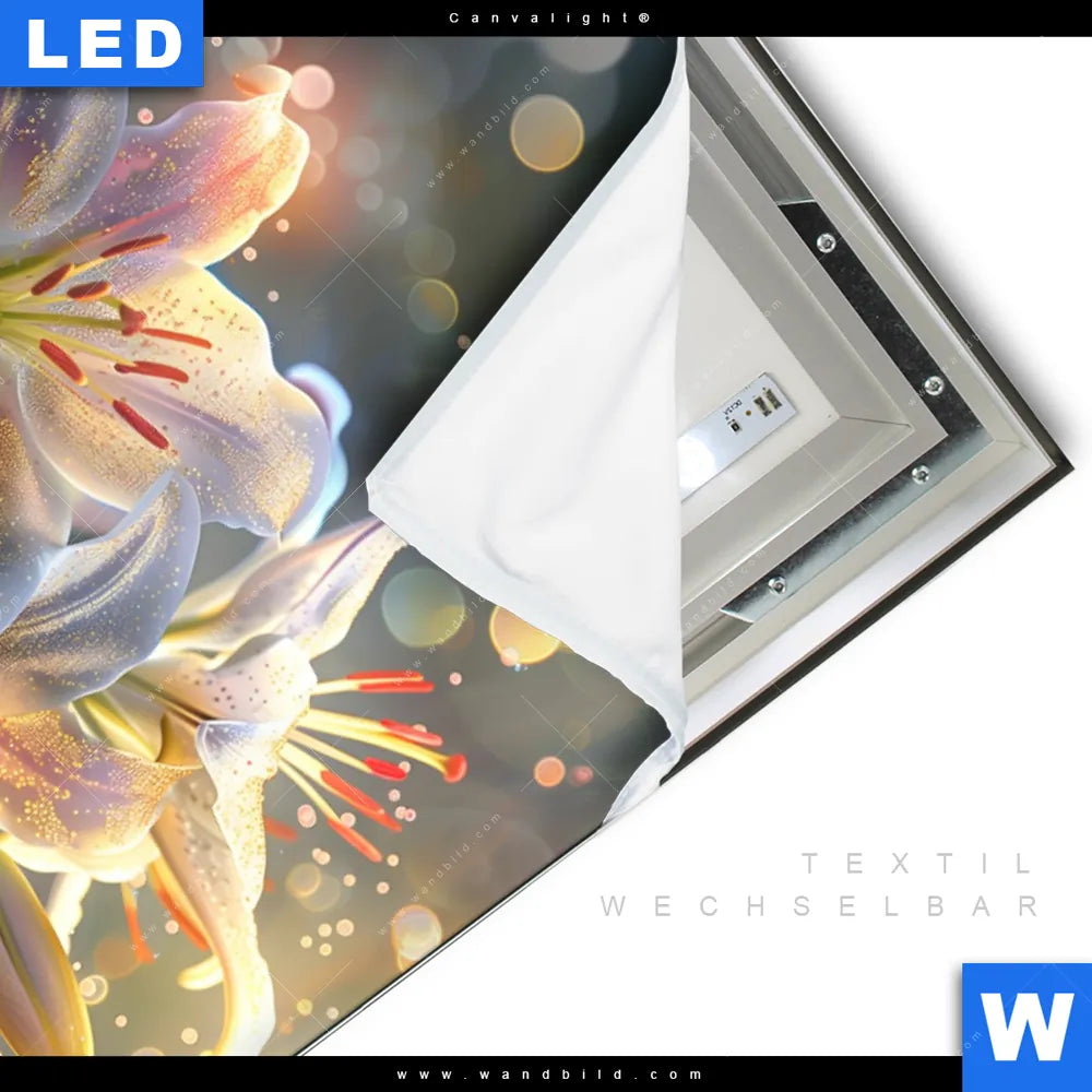 Canvalight® TEX Leuchtbild | Lilien im Morgenlicht | Hochformat