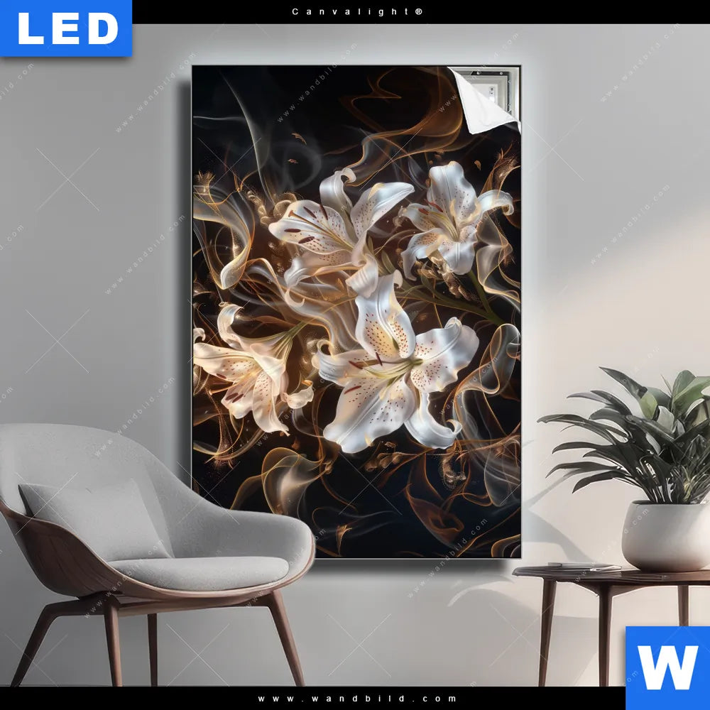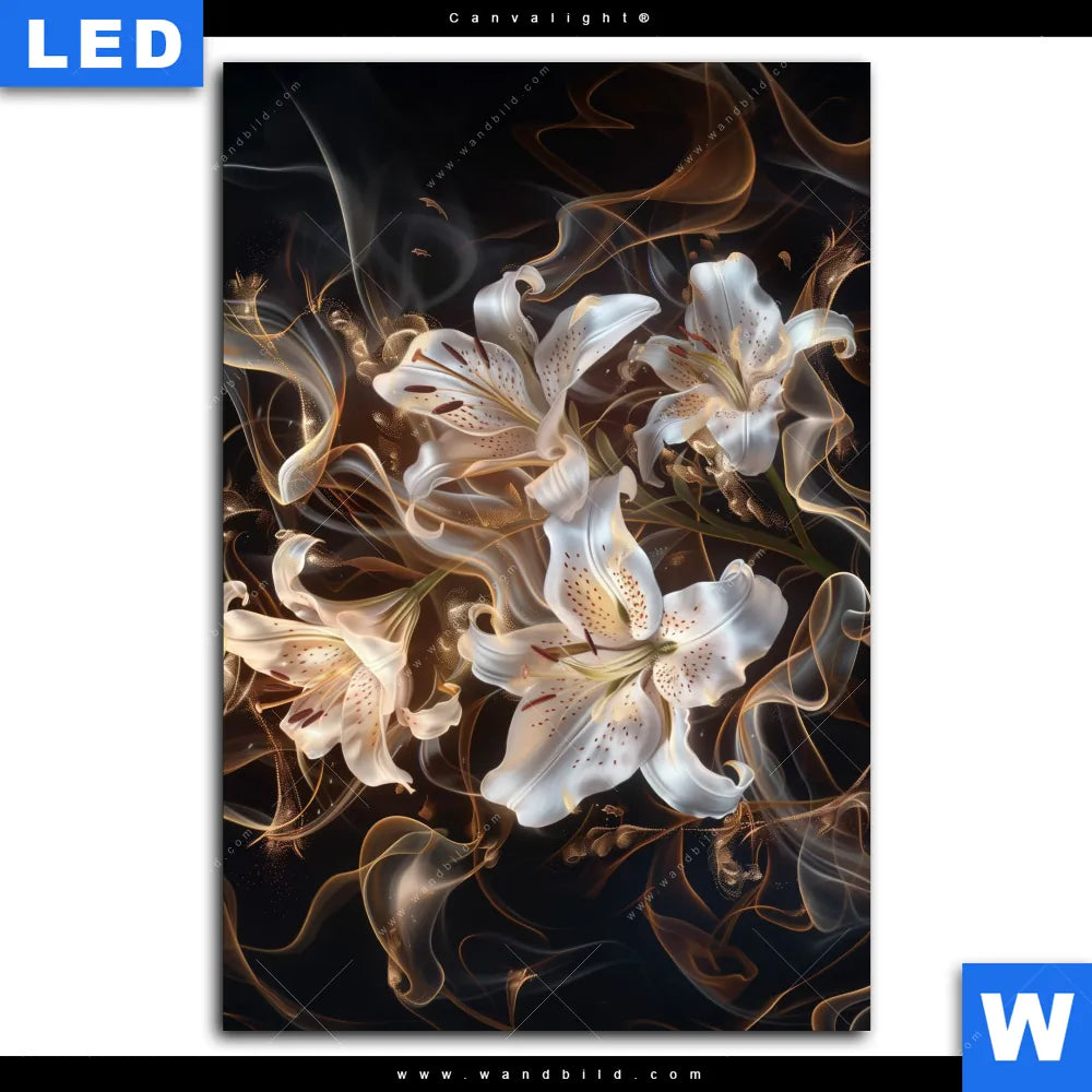 Canvalight® Leuchtbild | Lilien in goldenem Rauch | Hochformat