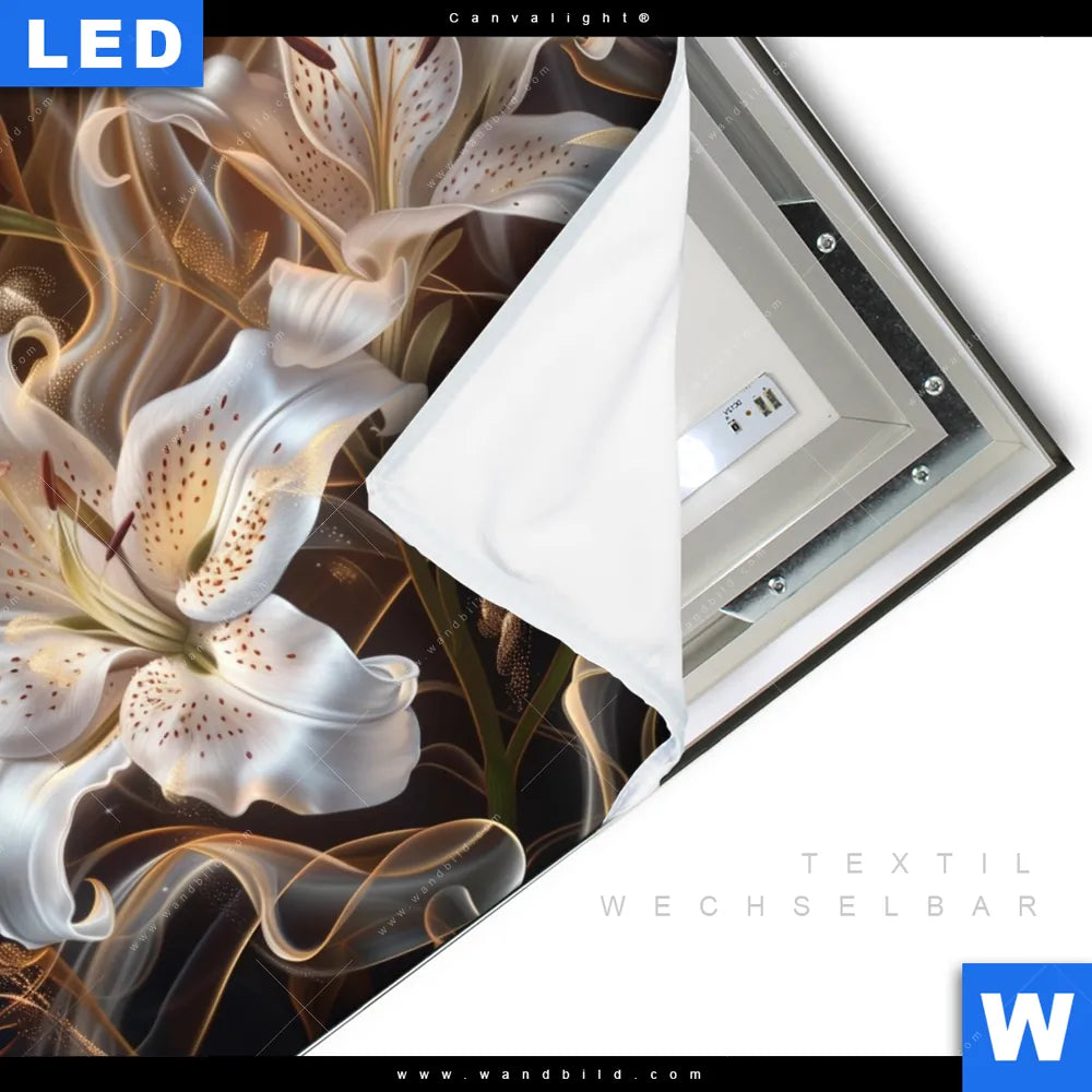Canvalight® TEX Leuchtbild | Lilien in goldenem Rauch | Quadrat
