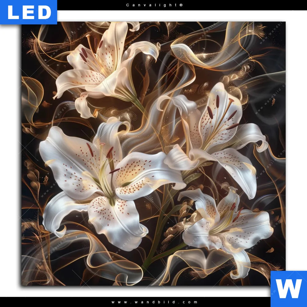 Canvalight® Leuchtbild | Lilien in goldenem Rauch | Quadrat