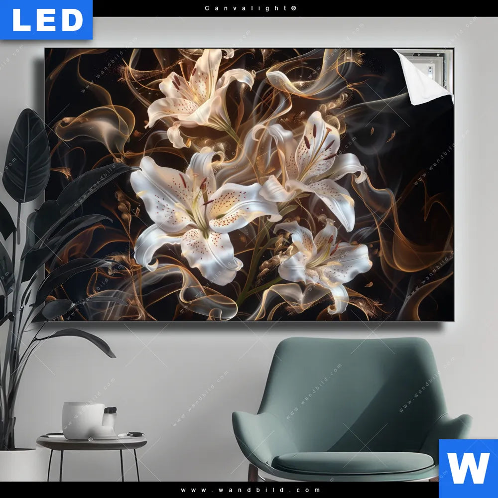 Canvalight® Leuchtbild | Lilien in goldenem Rauch | Querformat