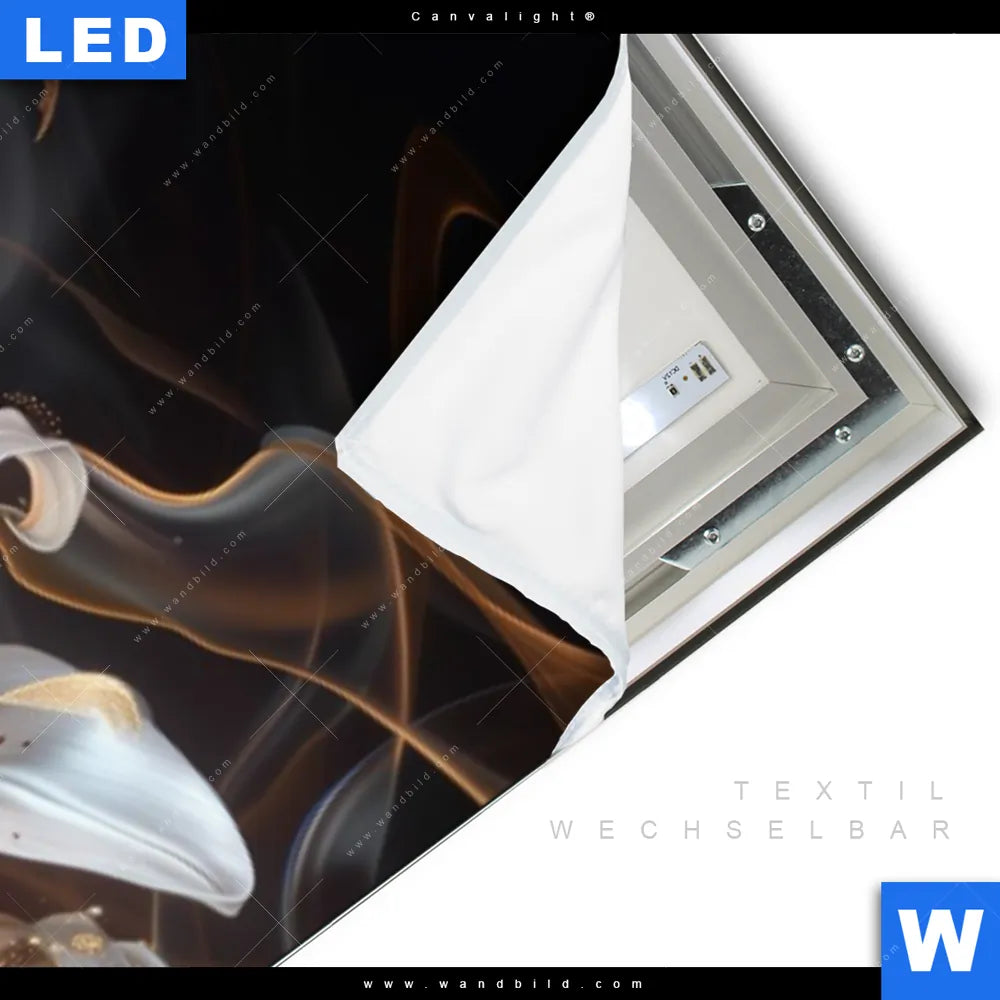 LED-Textilrahmen-Bild mit austauschbarem Blumen - Botanik Textil-Druck (Wechselbild)