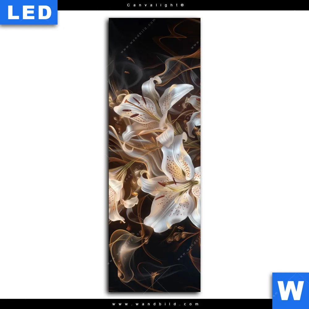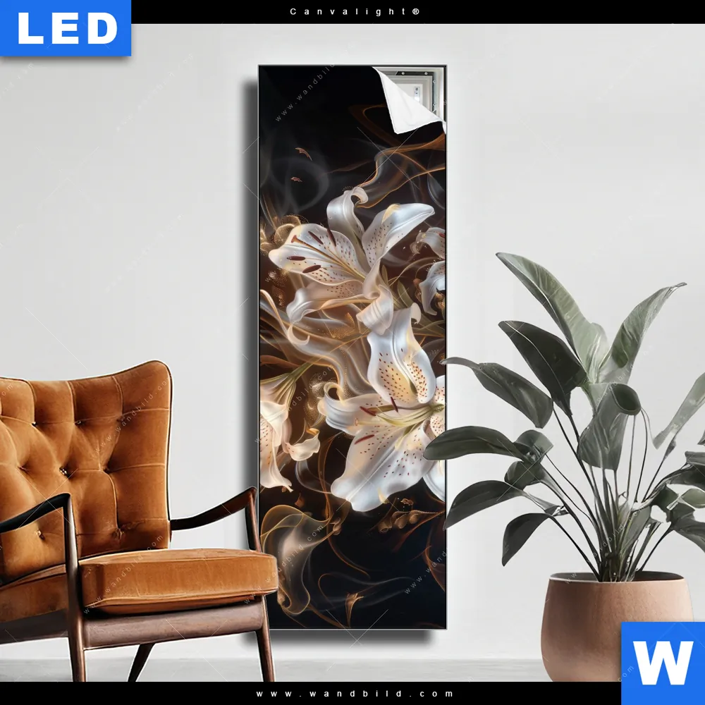 Canvalight® Leuchtbild | Lilien in goldenem Rauch | Schmal