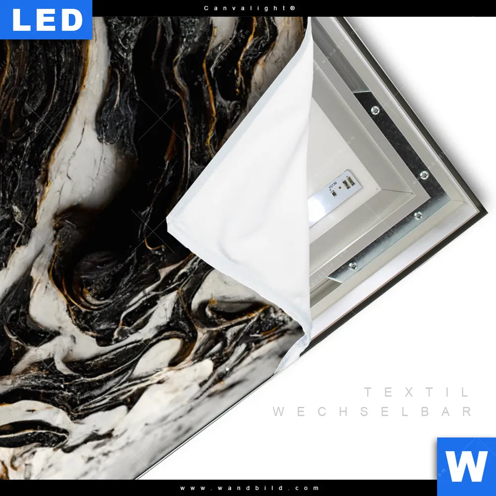 Canvalight® TEX Leuchtbild | Liquid Marmor Schwarz Gold | Hochformat