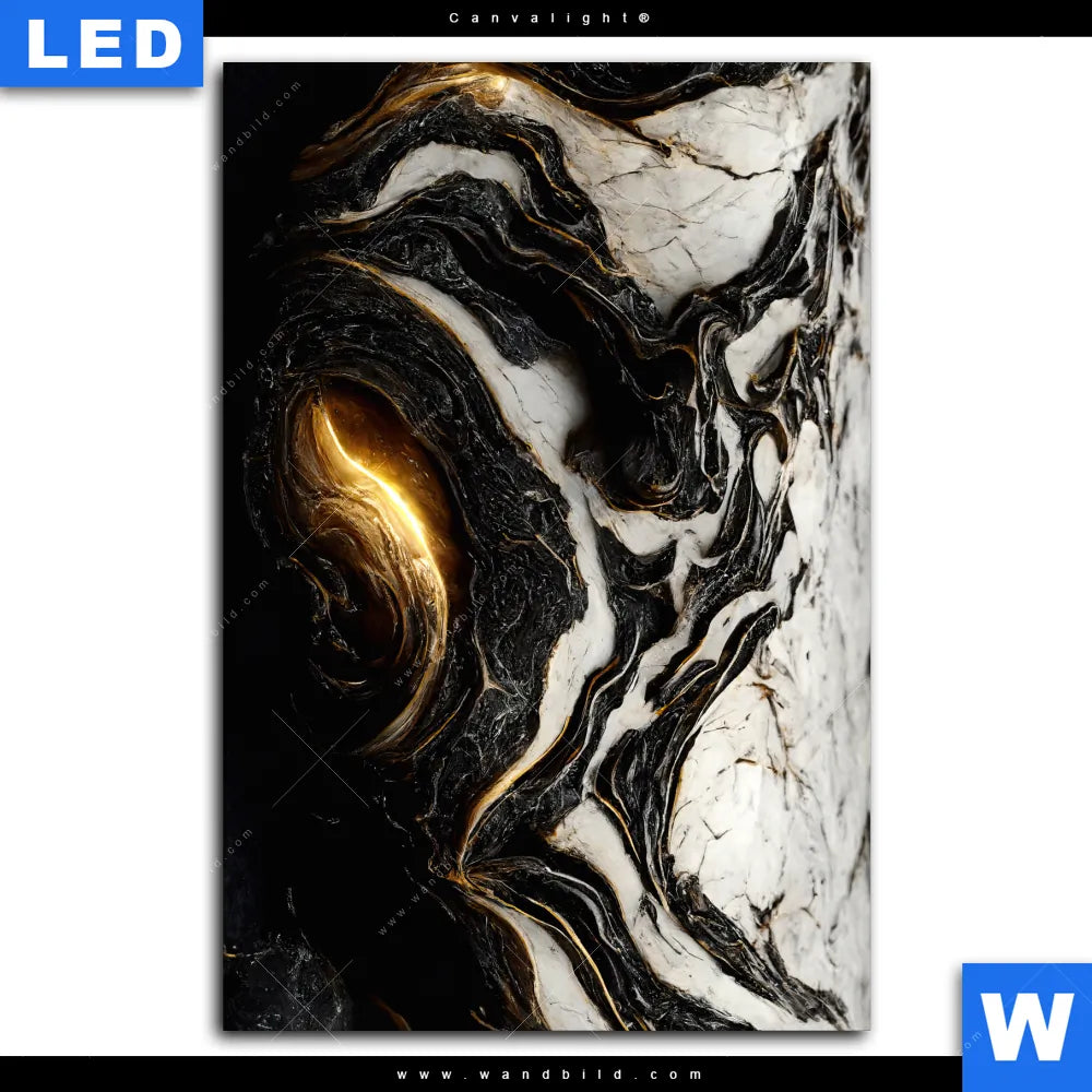 Canvalight® Leuchtbild | Liquid Marmor Schwarz Gold | Hochformat