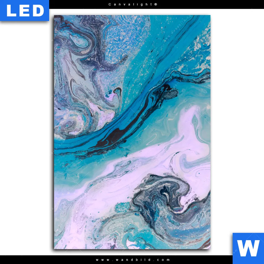 Canvalight® TEX Leuchtbild | Liquid Marmor Türkis Flieder | Hochformat