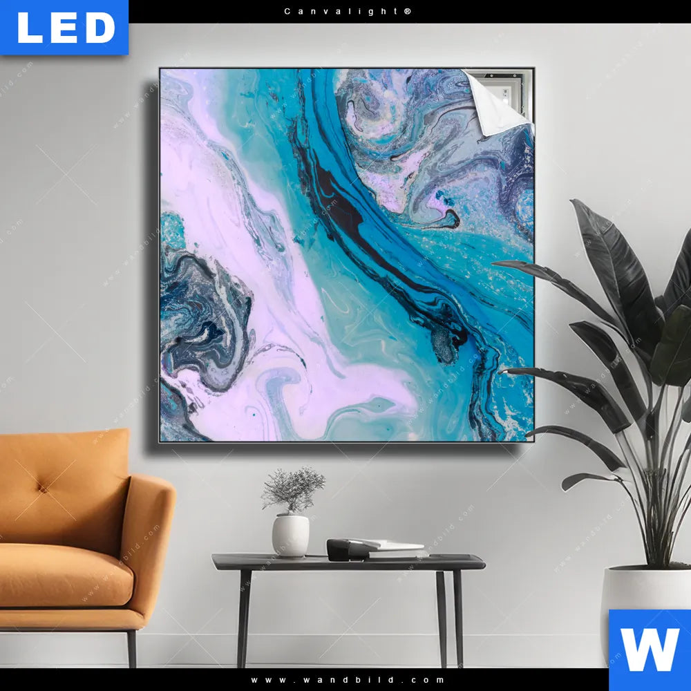 Canvalight® Leuchtbild | Liquid Marmor Türkis Flieder | Quadrat