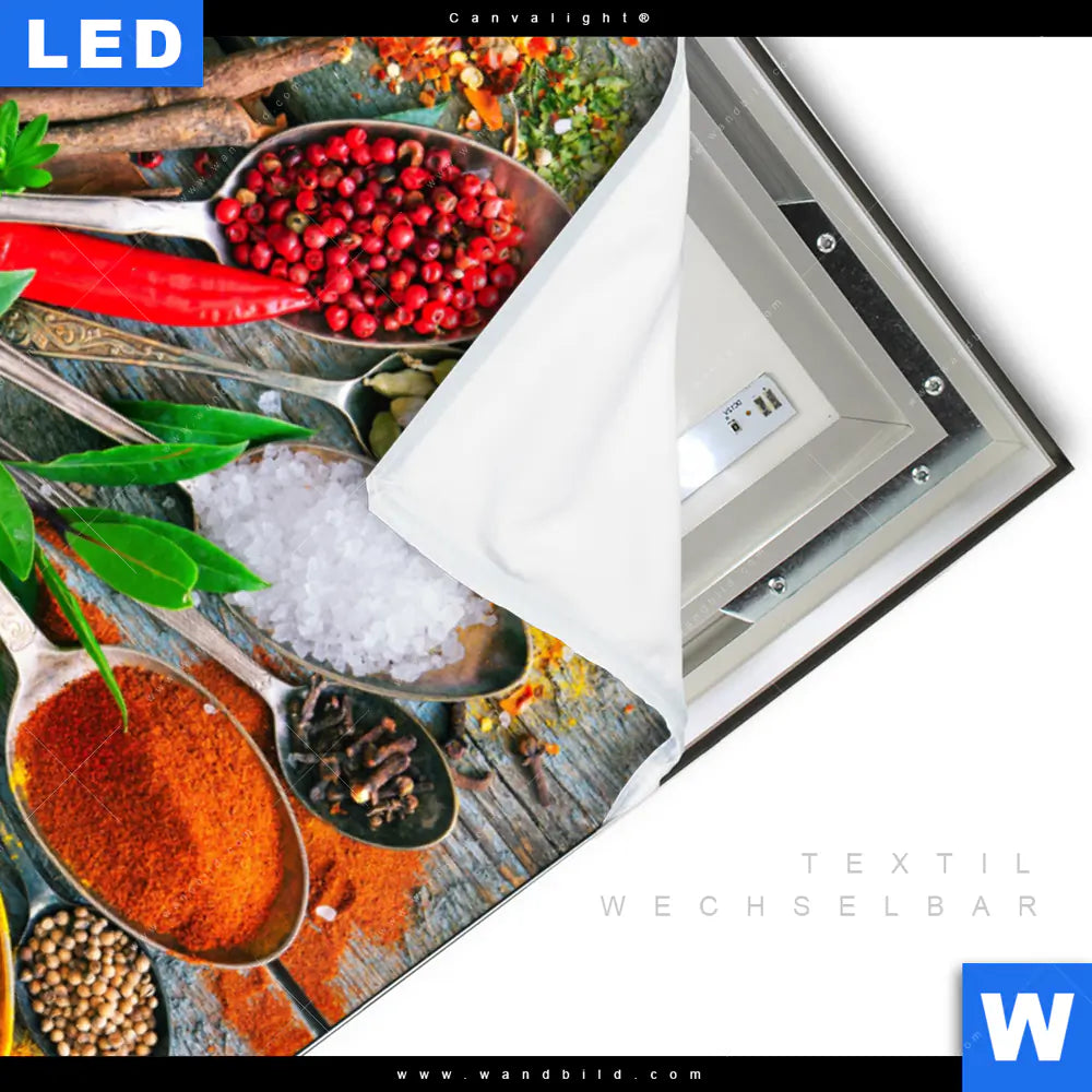 Canvalight® TEX Leuchtbild | Löffel mit Kräutern und Gewürzen | Hochformat
