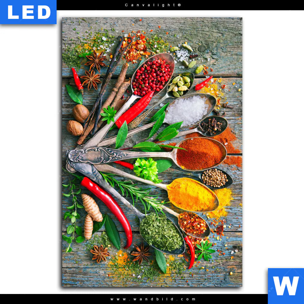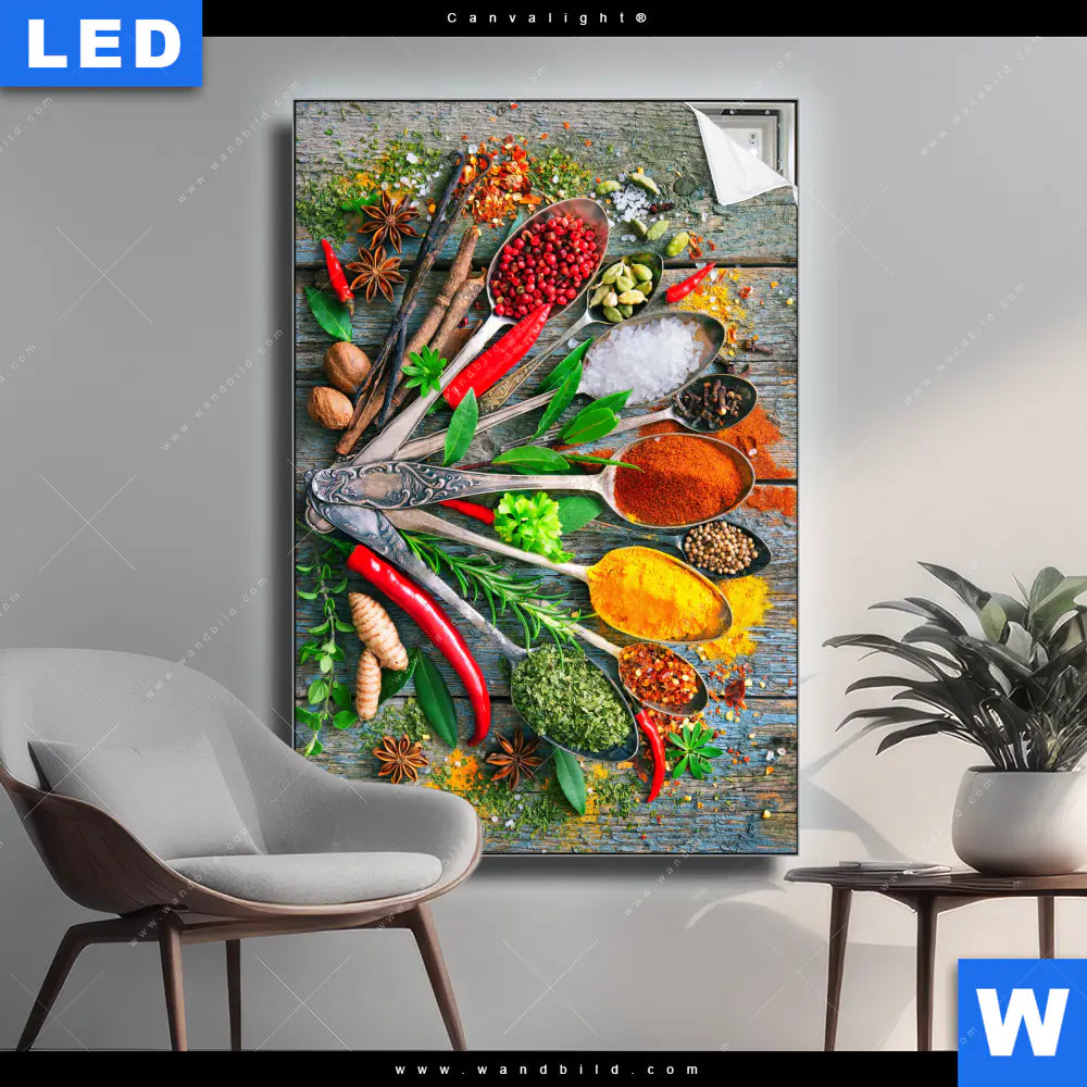 Canvalight® Leuchtbild | Löffel mit Kräutern und Gewürzen | Hochformat