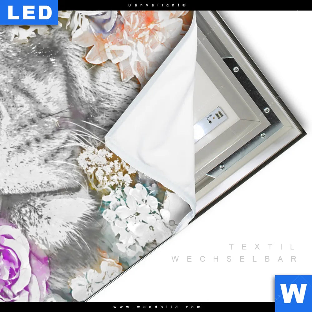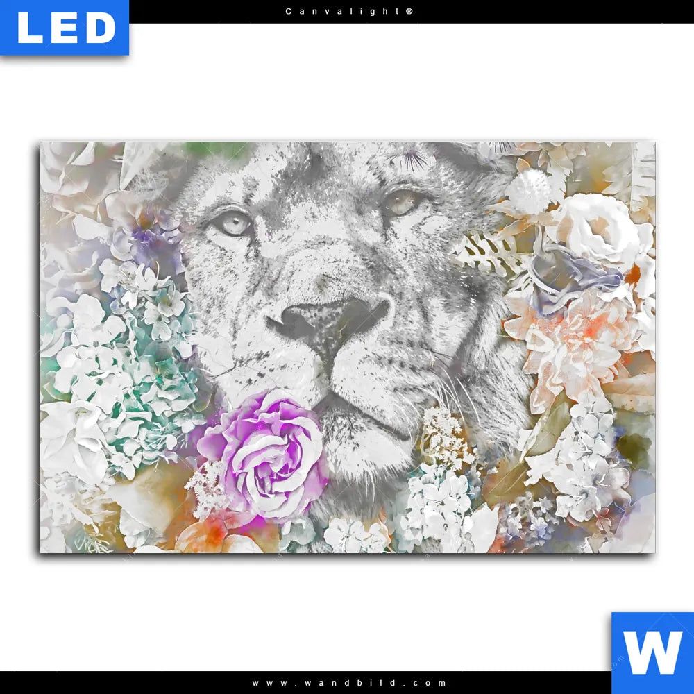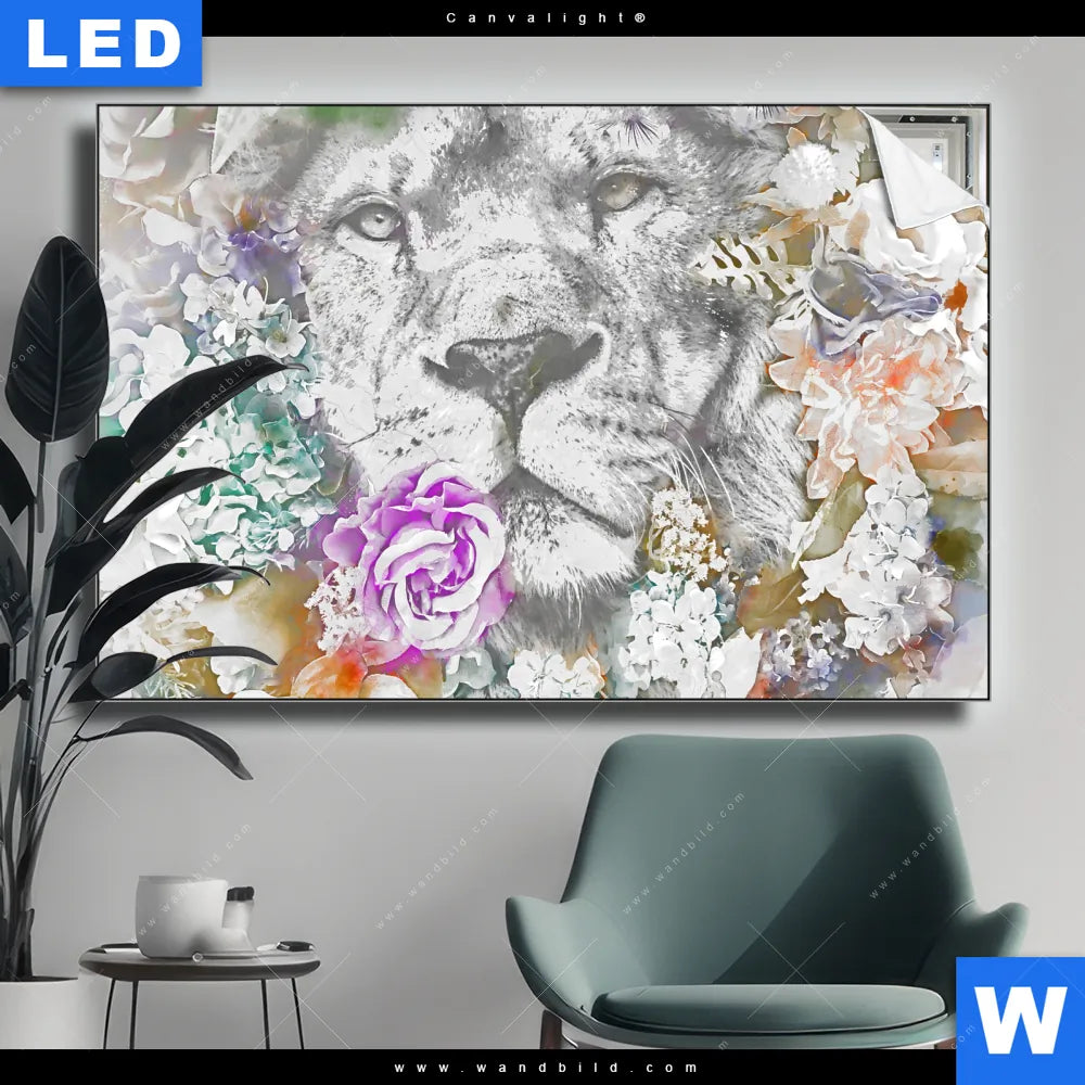 Canvalight® TEX Leuchtbild | Löwe & Blumen | Querformat