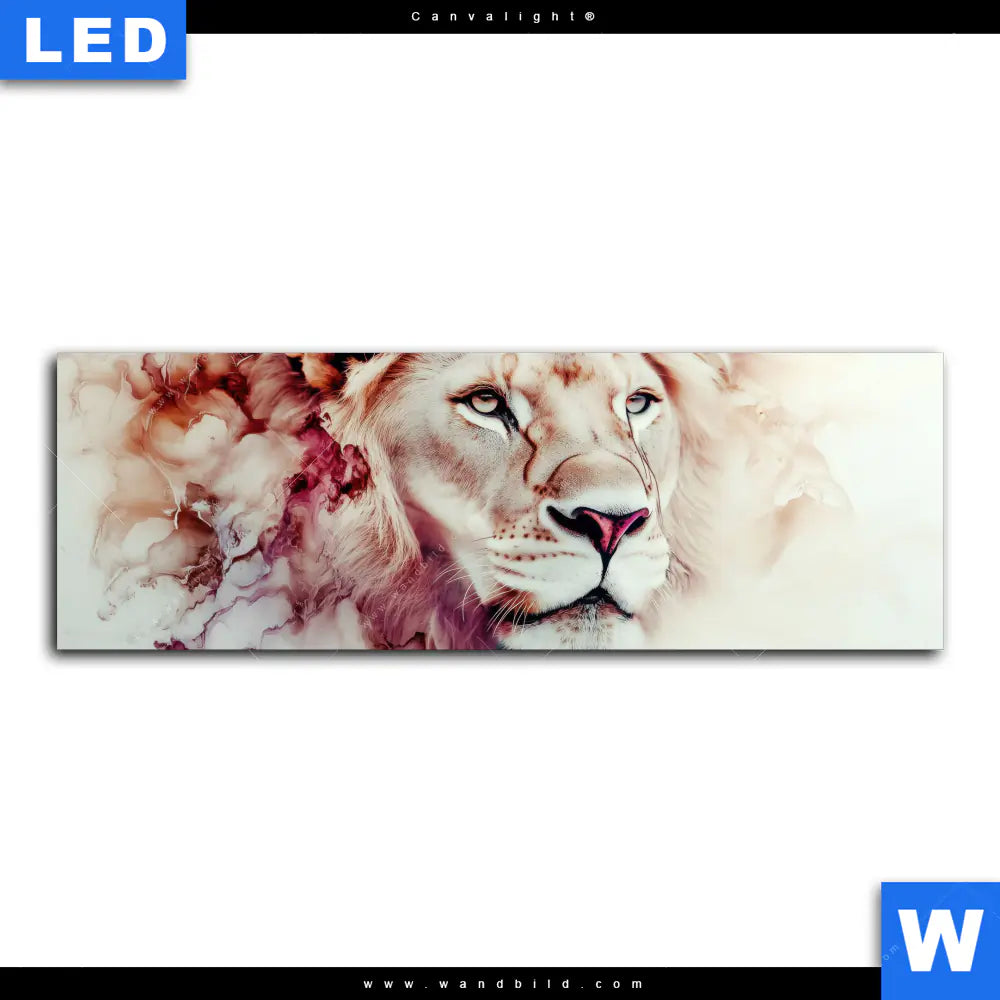 Canvalight® TEX Leuchtbild | Löwe im Farbenspiel | Panorama