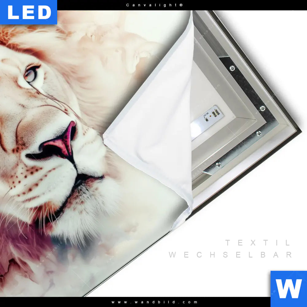 Canvalight® TEX Leuchtbild | Löwe im Farbenspiel | Querformat