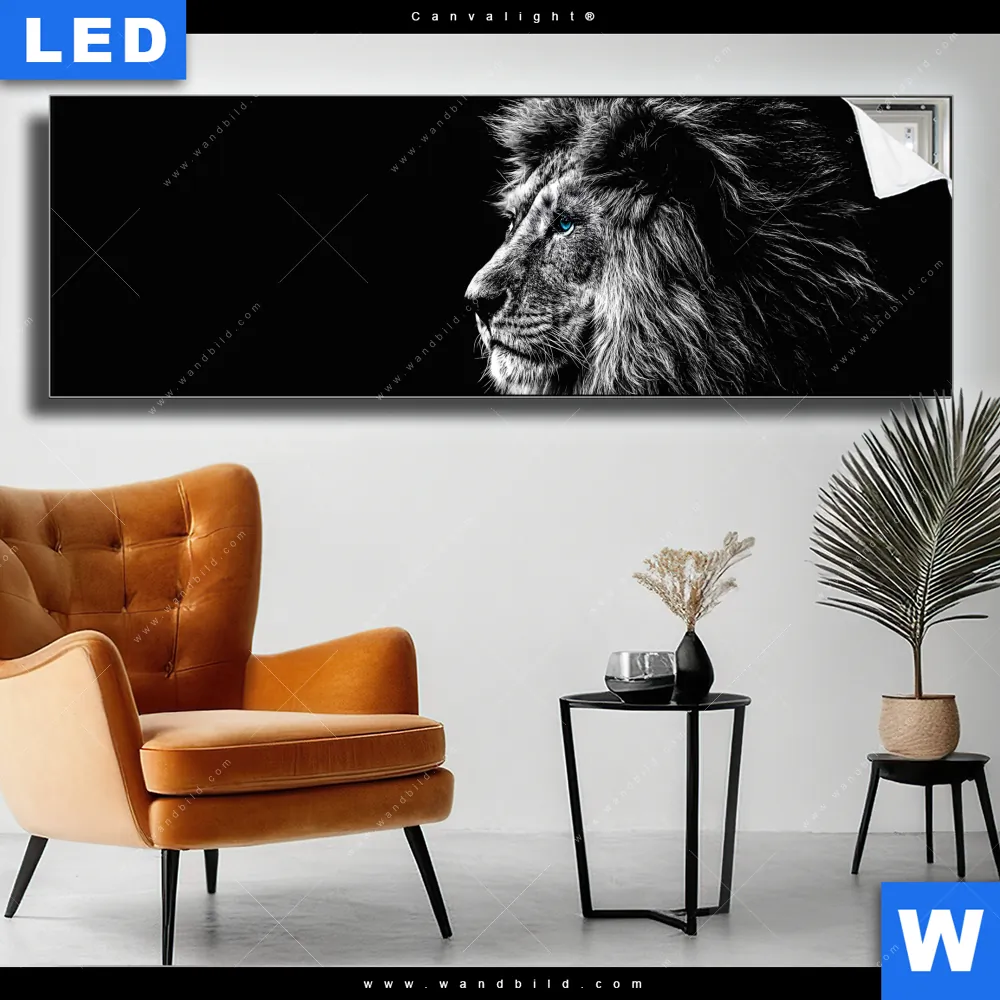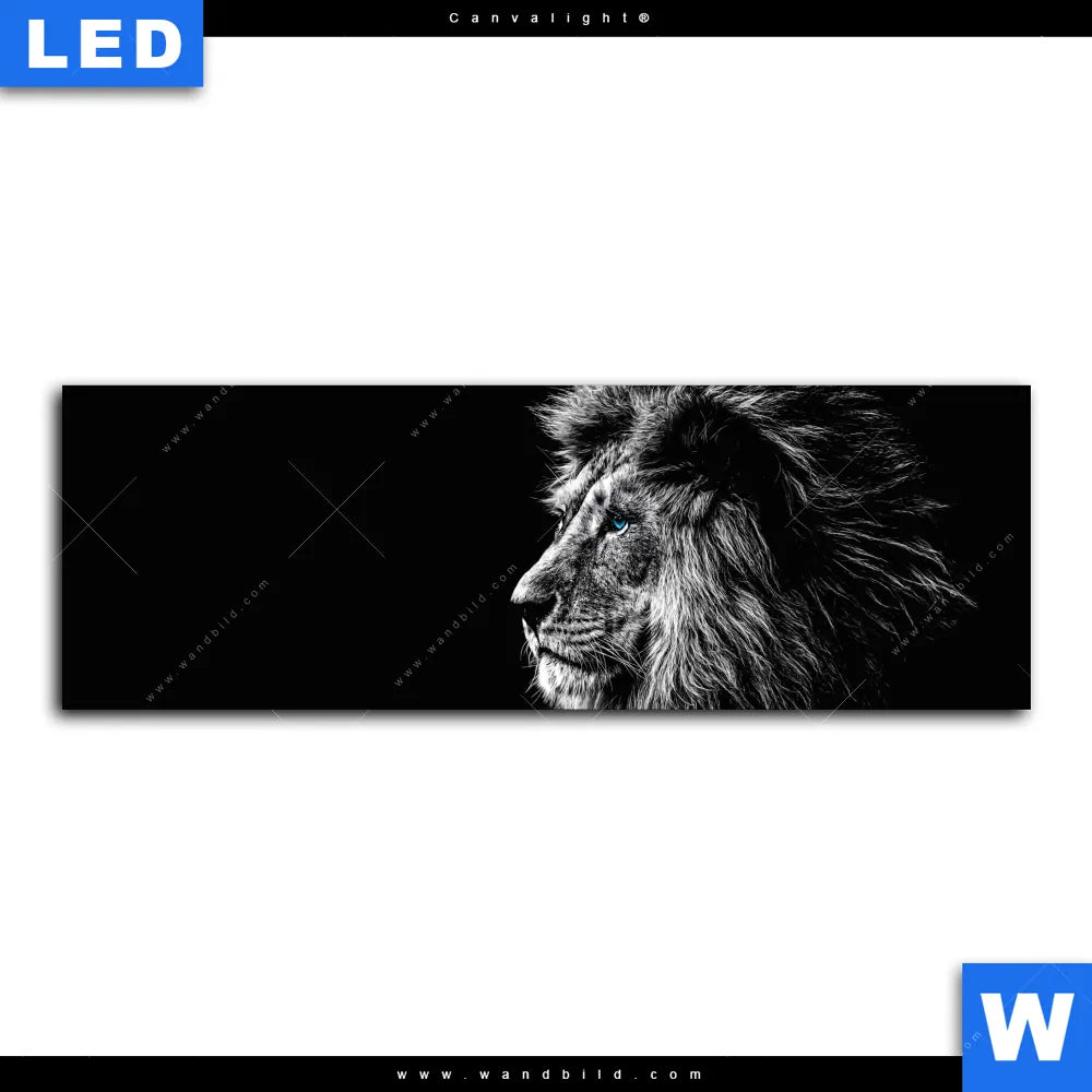 Canvalight® Leuchtbild | Löwe mit blauen Augen | Panorama